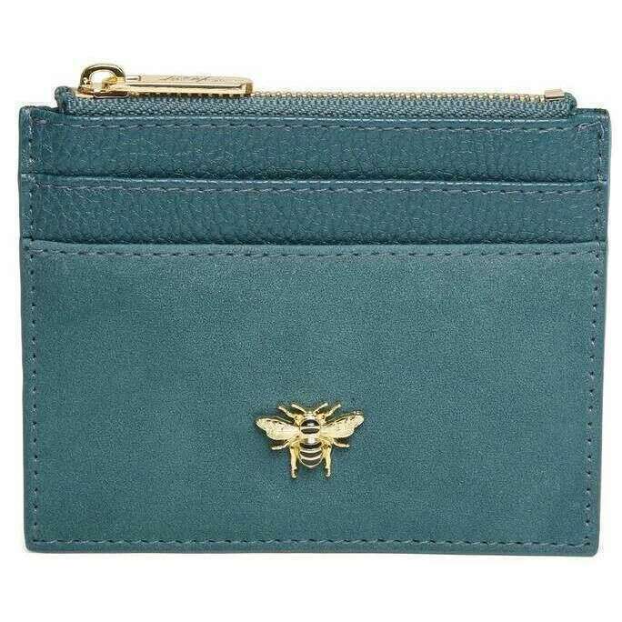 • 4 ranuras para tarjetas, compartimento de efectivo de cierre de la cremallera, logotipo de Honeybee en el frente, hardware de metal dorado
