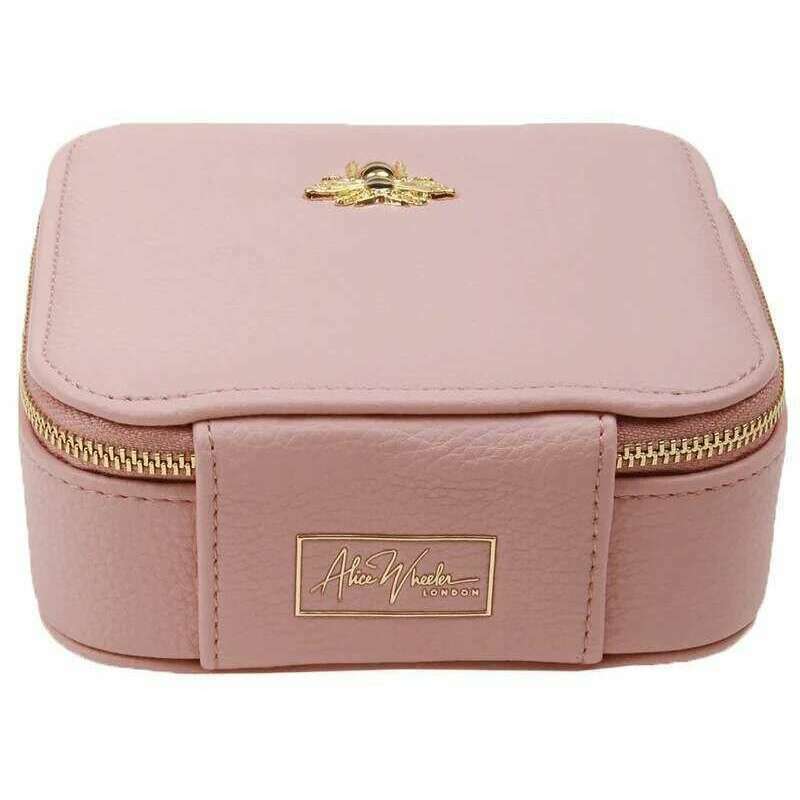 La diseñadora Alice Wheeler London te ha traído este cuadro interno de cuero vegano y de gamuza vegano de mujer para mujeres con tonos rosados. Mide 13.5 cm (altura) x 13.5 cm (ancho) x 5 cm (profundidad). Todas las joyas vienen completas con el empaque de Alice Wheeler. El joyero de viaje de Alice Wheeler London - Pink se convertirá en un favorito de todos los tiempos con su gran organización y tamaño perfecto para meterse en cualquier bolsa, sea cual sea la ocasión. Con un rollo de anillo ideal para aretes y sus anillos más desgastados, 3 pequeños compartimentos para piezas más pequeñas, 2 compartimentos laterales más grandes para collares y pulseras y un espejo en la tapa. El cierre de la cremallera de tonos dorados ofrece seguridad y lujo. Completo con el logotipo de Honeybee adornado a la parte superior de este caso.