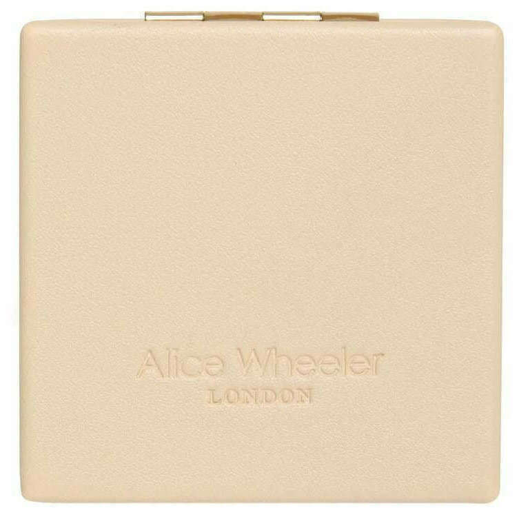 This well made women's vienna mirror compact from Alice Wheeler London comes in a sand beige colour and is manufactured from 100% nappa finish vegan faux leather. It measures 7.3cm(height) x 7.3cm(width). All the compacts come complete with alice wheeler packaging. The Alice Wheeler London Vienna Mirror Compact - Sand Beige is the perfect accessory that is essential to carry around with you in your handbag. The Alice Wheeler branding is embedded onto the front of it. Inside is a mirror with a twin gold-toned metal frame which is ideal for those day to day touch ups.