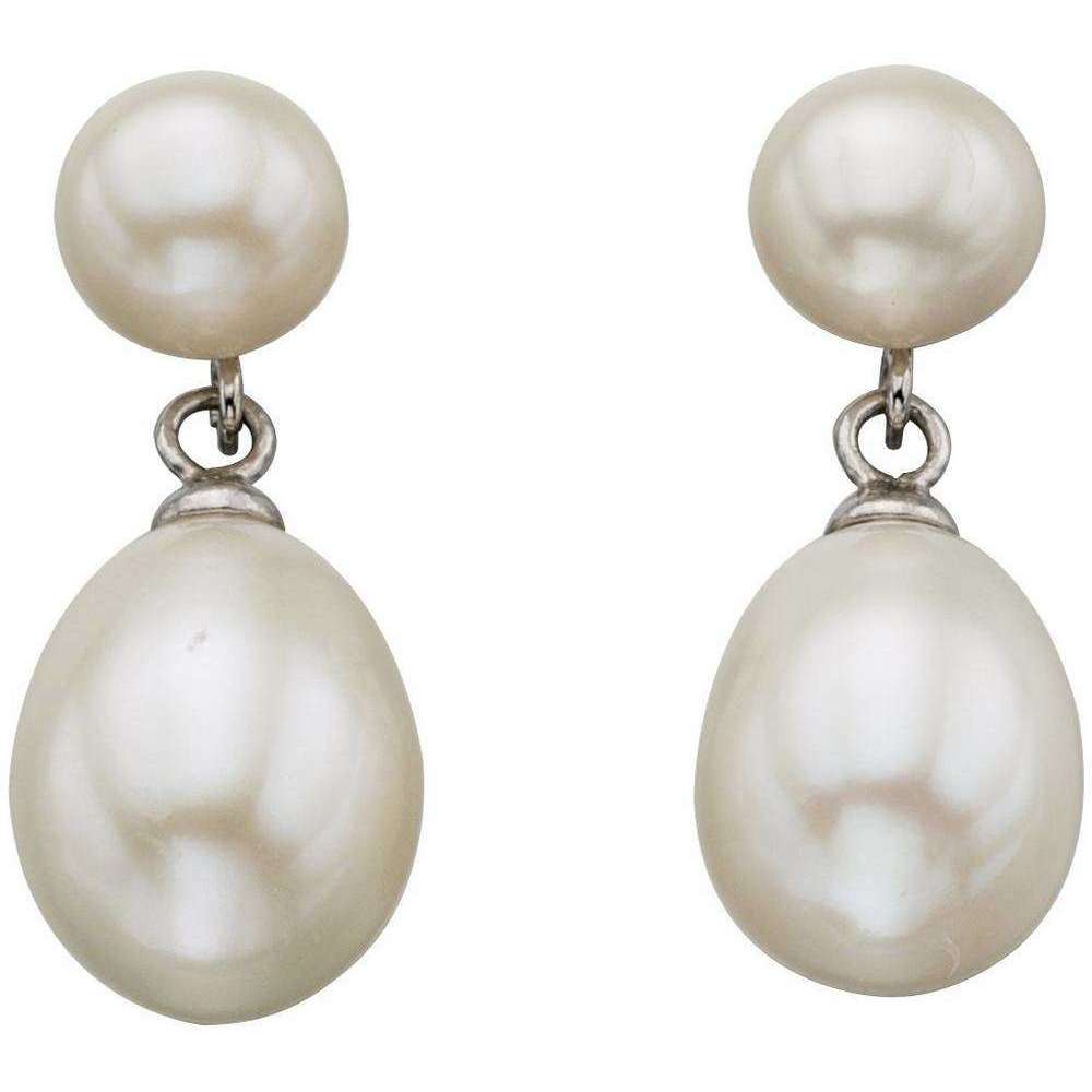 Pendientes de pernos de doble caída de perlas de agua dulce - White/Silver