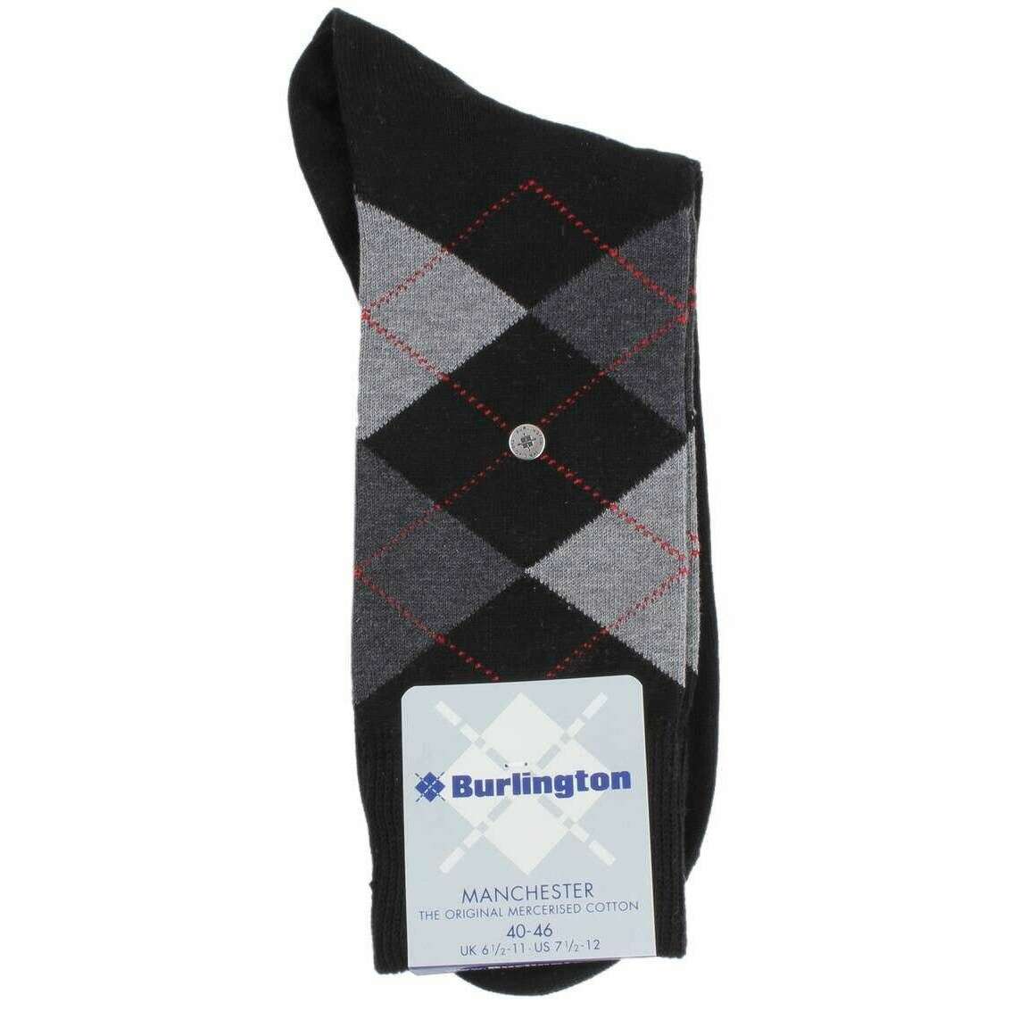 Calcetines de algodón Mercerized Burlington Argyle - Negro/Gris