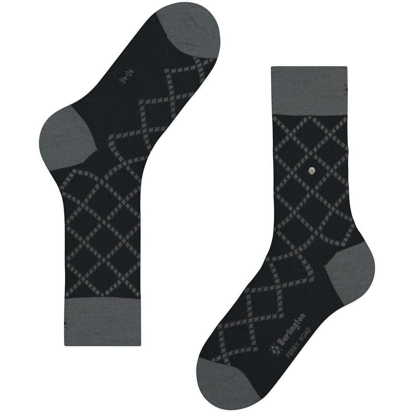 Estos calcetines Ferry Road para hombre de Burlington, bien hechos, vienen en color negro y están fabricados con 68 % lana virgen, 31 % poliamida y 1 % elastano. Además, los calcetines negros están diseñados con un patrón de rombos. Se recomienda lavarlos a 30 grados para mantener estos calcetines en buenas condiciones. Todos los calcetines vienen completos con etiquetas de calcetines Burlington. Los calcetines Burlington Ferry Road - Negro son una combinación sofisticada de estilo clásico, calidad superior y comodidad superior. Diseñados pensando en los caballeros más exigentes, estos calcetines son la opción ideal para un look profesional y elegante. El elegante diseño de diamantes añade un toque de elegancia a estos calcetines sostenibles. Acentuado con el clip Burlington en el puño, se le garantiza una calidad que solo Burlington puede ofrecer.