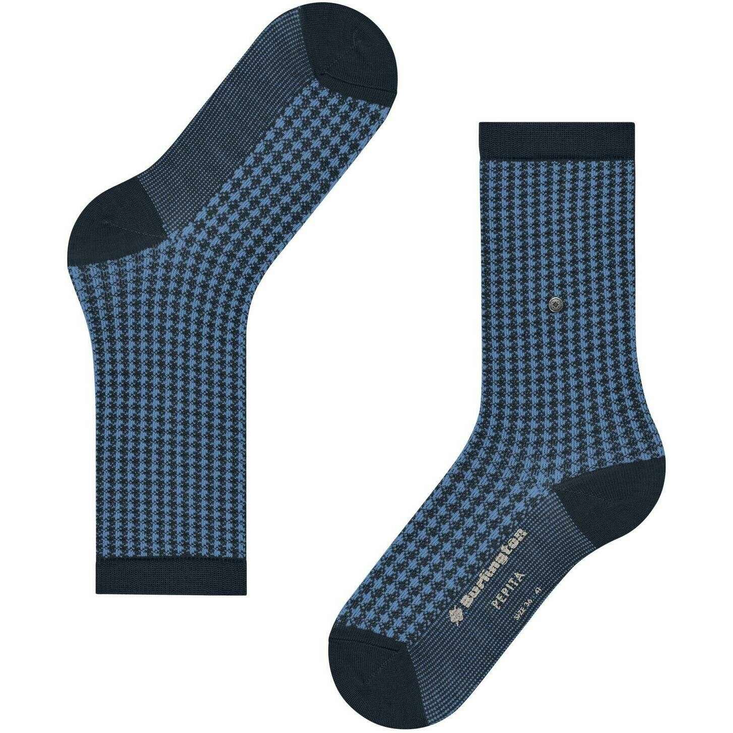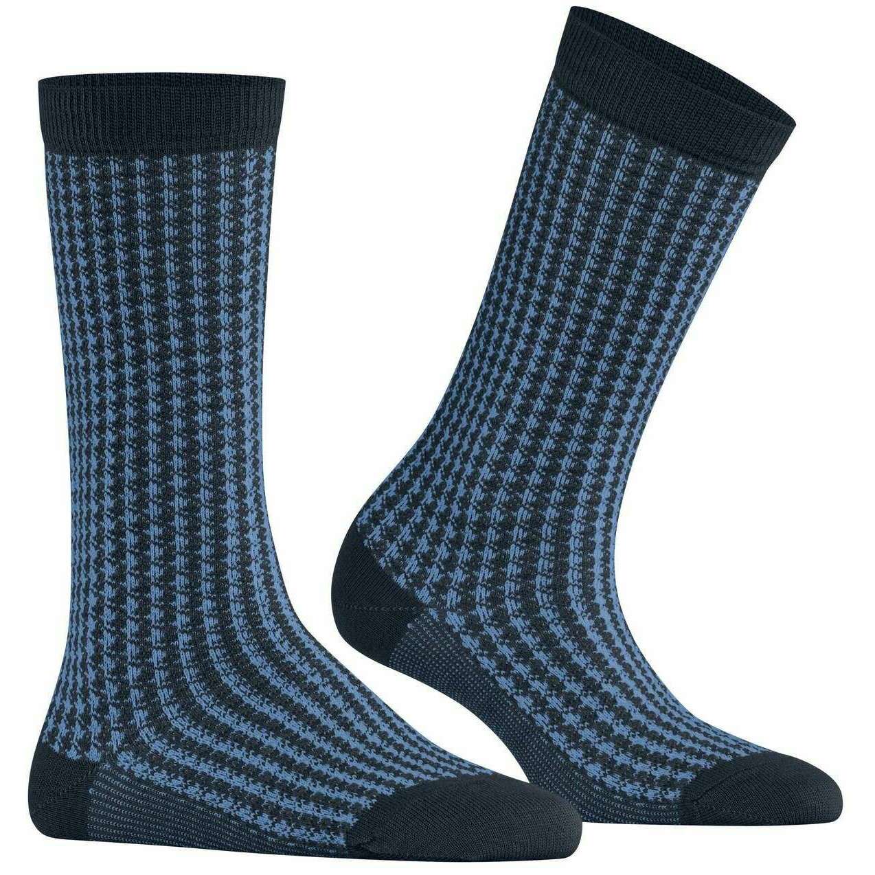 Perfectos para mujer son estos calcetines pepita azul marino de Burlington, además están confeccionados con 73% lana virgen, 25% poliamida (8% reciclada) y 2% elastano. Además los calcetines azul marino están diseñados con un estampado de pata de gallo. Se recomienda lavar a 30 grados para mantener estos calcetines en buen estado. Todos los calcetines vienen completos con etiquetas de calcetines Burlington. Los calcetines Burlington Pepita - Azul marino son una adición elegante y única a cualquier guardarropa, diseñados para agregar un toque de estilo y al mismo tiempo garantizar comodidad y durabilidad. Estos calcetines combinan el delicado diseño de pata de gallo con el icónico clip Burlington en el lateral para realzar cualquier conjunto. La cálida mezcla de lana mantiene estos calcetines transpirables, mientras que el tejido elástico garantiza que se ajusten cómodamente sin deslizarse.