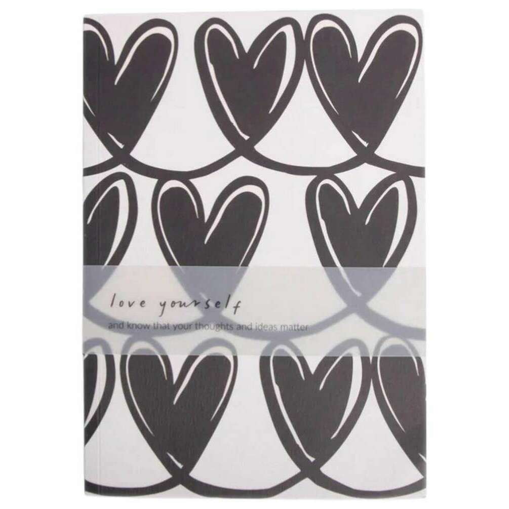 Cuaderno A5 de tapa blanda Mono Linked Hearts de Caroline Gardner - Negro/Crema