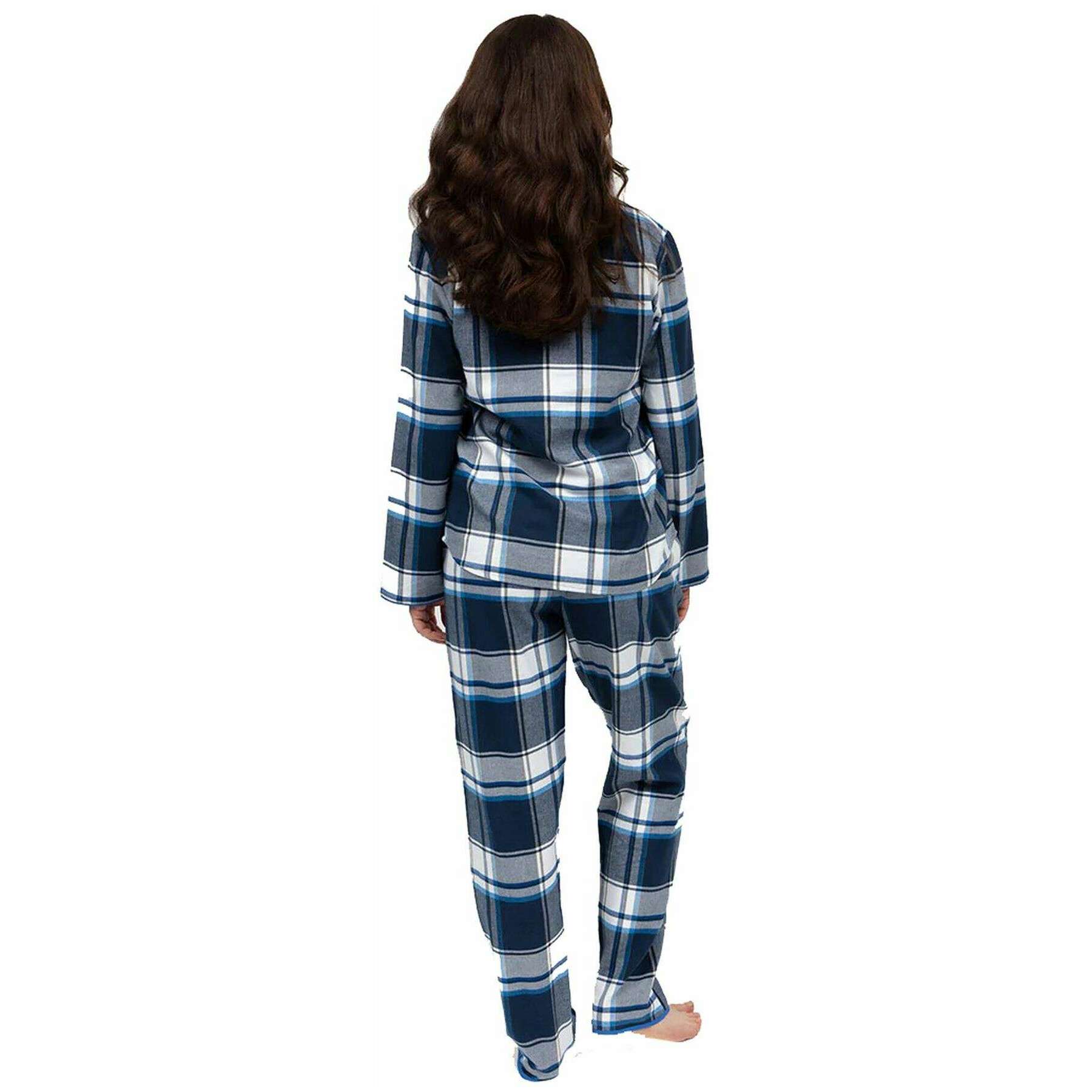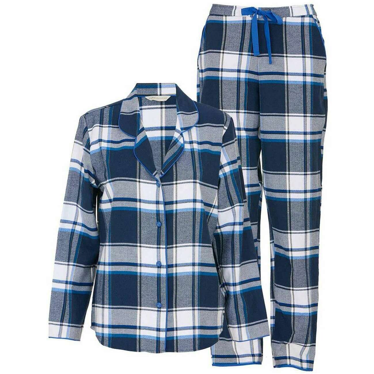 Este pijama de cuadros cepillados escarchados para mujer de la marca Cyberjammies está confeccionado en 100% algodón y se presenta en azul marino. Además, el pijama azul marino/blanco está diseñado con un patrón de cuadros. Se recomienda lavar a máquina del revés, no remojar, lavar con colores similares para mantener este pijama en buenas condiciones. Todos los pijamas vienen completos con etiquetas de cyberjammies. El conjunto de pijama Cyberjammies Frosty Brushed Check - Azul marino/Blanco es el tipo de par que querrás usar todo el tiempo, de día o de noche, mientras estás en la comodidad de tu acogedor hogar. El hermoso diseño a cuadros ofrece un carácter clásico, mientras que el magnífico material de algodón se sentirá lujoso contra tu piel. La camisa con botones te brinda un estilo atemporal, mientras que la parte inferior tiene un cordón para permitir un ajuste cómodo.