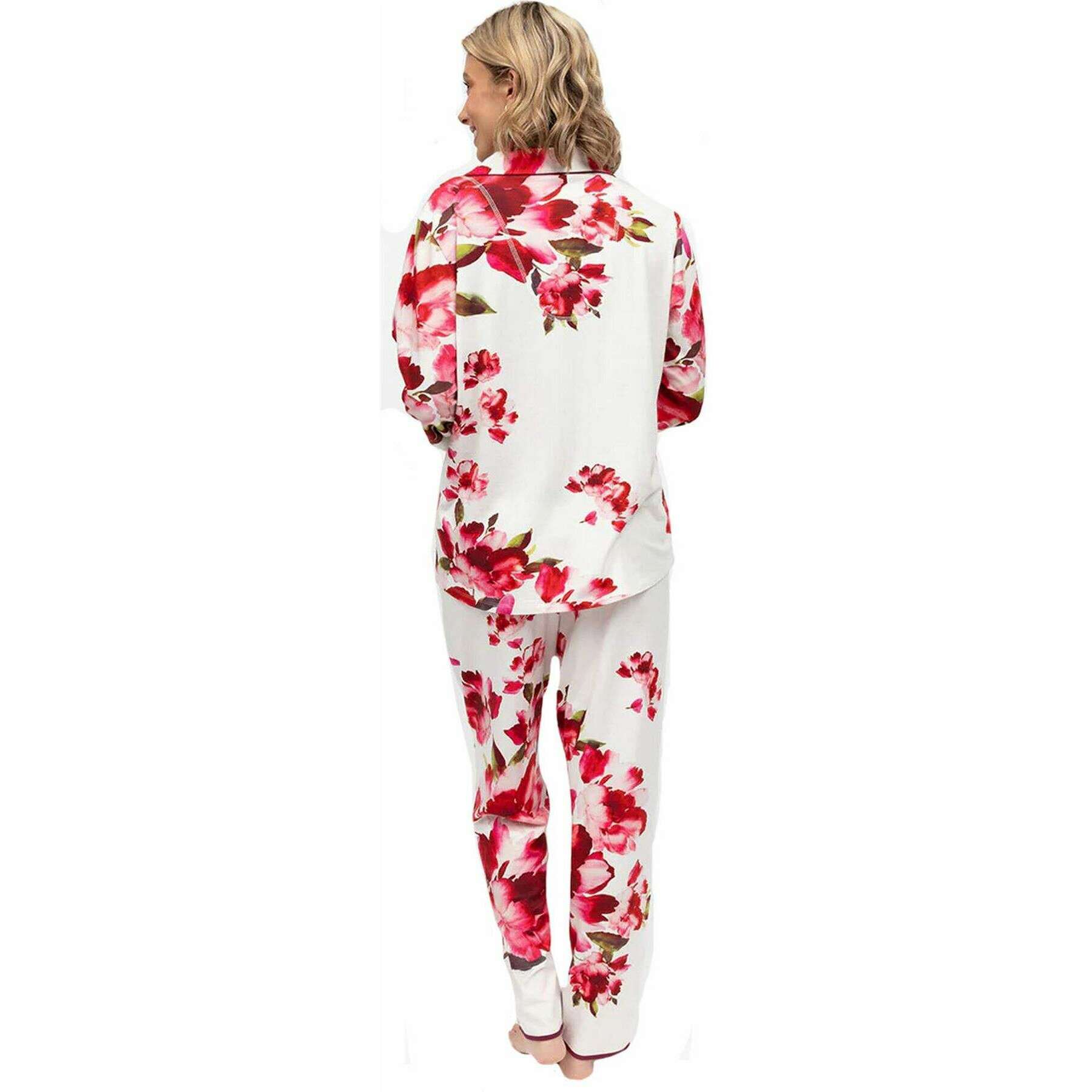 Este pijama de punto con estampado floral Isabella para mujer de la marca Cyberjammies está confeccionado con 52 % algodón, 41 % modal y 7 % elastano y se presenta en color rosa. Además, el pijama burdeos/rosa sangre de buey está diseñado con un patrón floral. Se recomienda lavar a máquina del revés, no remojar, lavar con colores similares para mantener estos pijamas en buenas condiciones. Todos los pijamas vienen completos con etiquetas de cyberjammies. El conjunto de pijama de jersey con estampado floral Isabella de Cyberjammies - Ox Blood Borgoña/Rosa hace que cada momento de inactividad se sienta especial. Confeccionado con una suave mezcla de punto de algodón, modal y elastano, este conjunto ofrece el equilibrio perfecto entre comodidad y elasticidad. La parte superior presenta un cuello clásico con solapas, ribetes color sangre y botones cubiertos para un acabado entallado, mientras que la parte inferior a juego incluye una cinturilla elástica, cordón y bolsillos laterales para mayor comodidad. Acabado con un delicado estampado floral rojo sobre una fresca tela blanca, este juego es ideal para dormir o descansar con estilo.