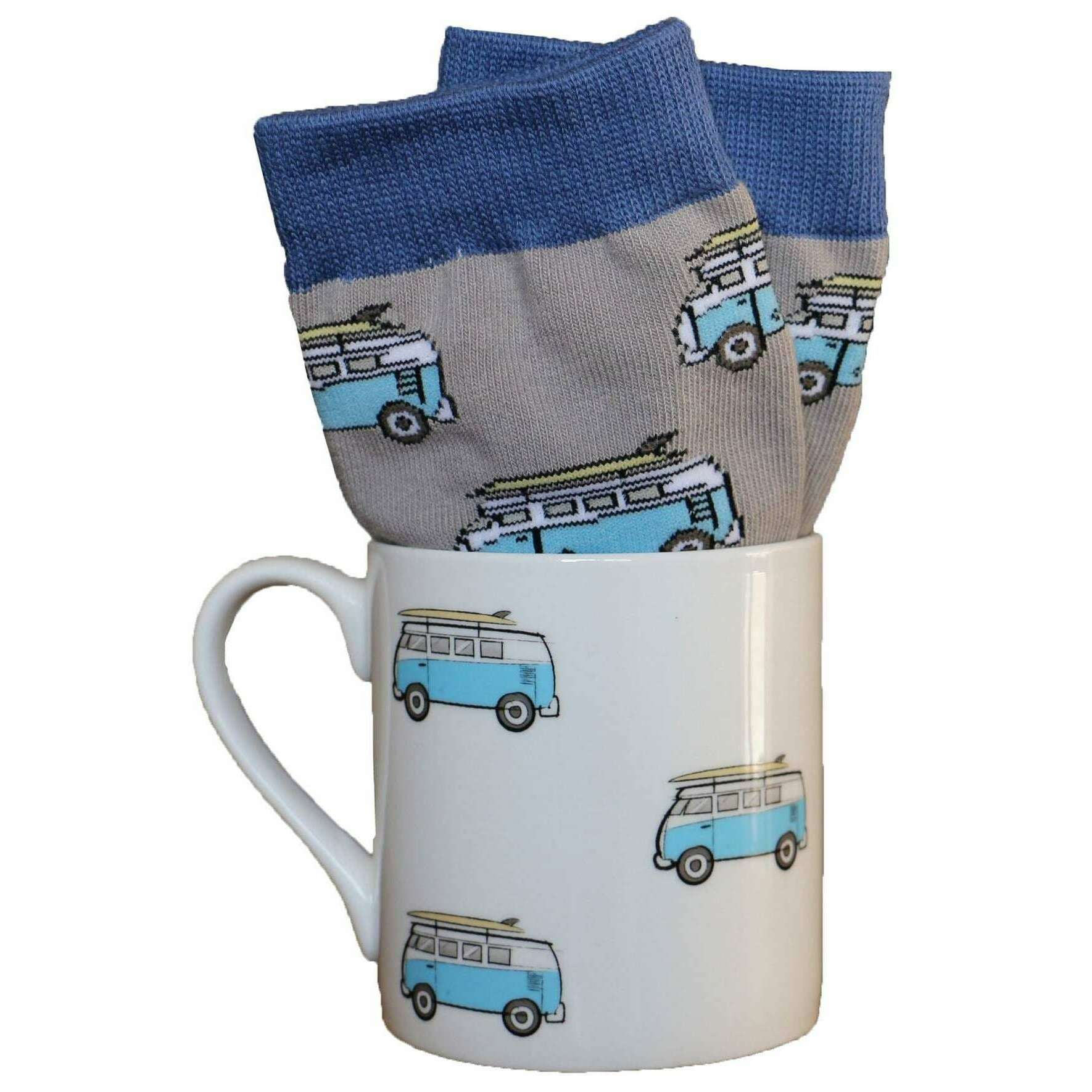 Juego de taza y calcetines David Aster Campervan - Blanco