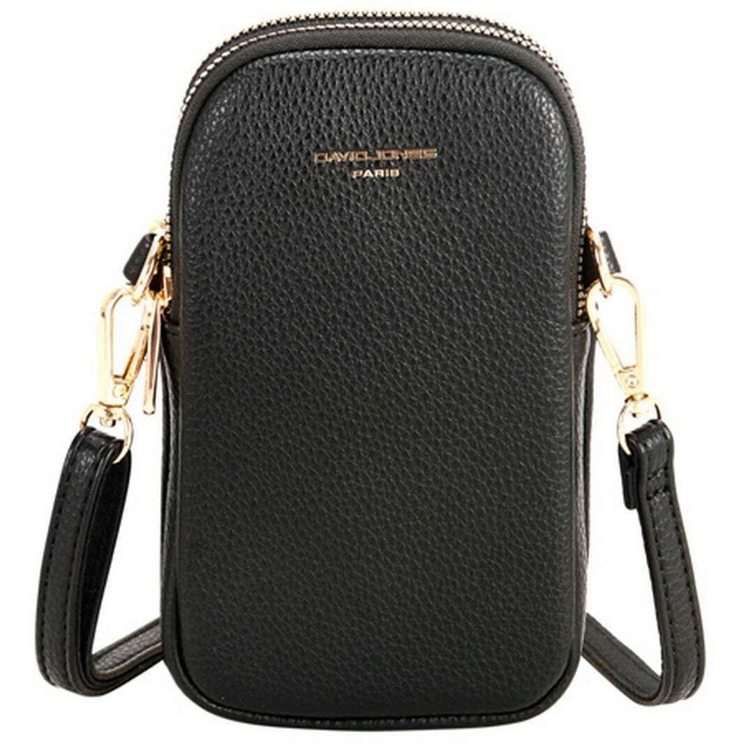 Esta funda para móvil con doble cremallera para mujer ha sido confeccionada 100% en poliuretano, se presenta en color negro y es de la marca David Jones. Mide 18 cm (alto) x 10 cm (ancho) x 4 cm (profundidad). Todas las bolsas vienen completas con el embalaje de David Jones. El bolso con funda para teléfono con doble cremallera David Jones - Negro es un bolso súper liviano que es perfecto para cualquier ocasión y cualquier atuendo. Este diseño tiene un tamaño conveniente que es perfecto para guardar artículos más pequeños y su teléfono. Cuenta con un bolsillo interno con cierre de doble cremallera que garantiza organización y un uso seguro. Tener una correa cruzada larga y totalmente ajustable te permite tener un manos libres que puedes adaptar para que te resulte más cómodo. Completo con la marca David Jones.