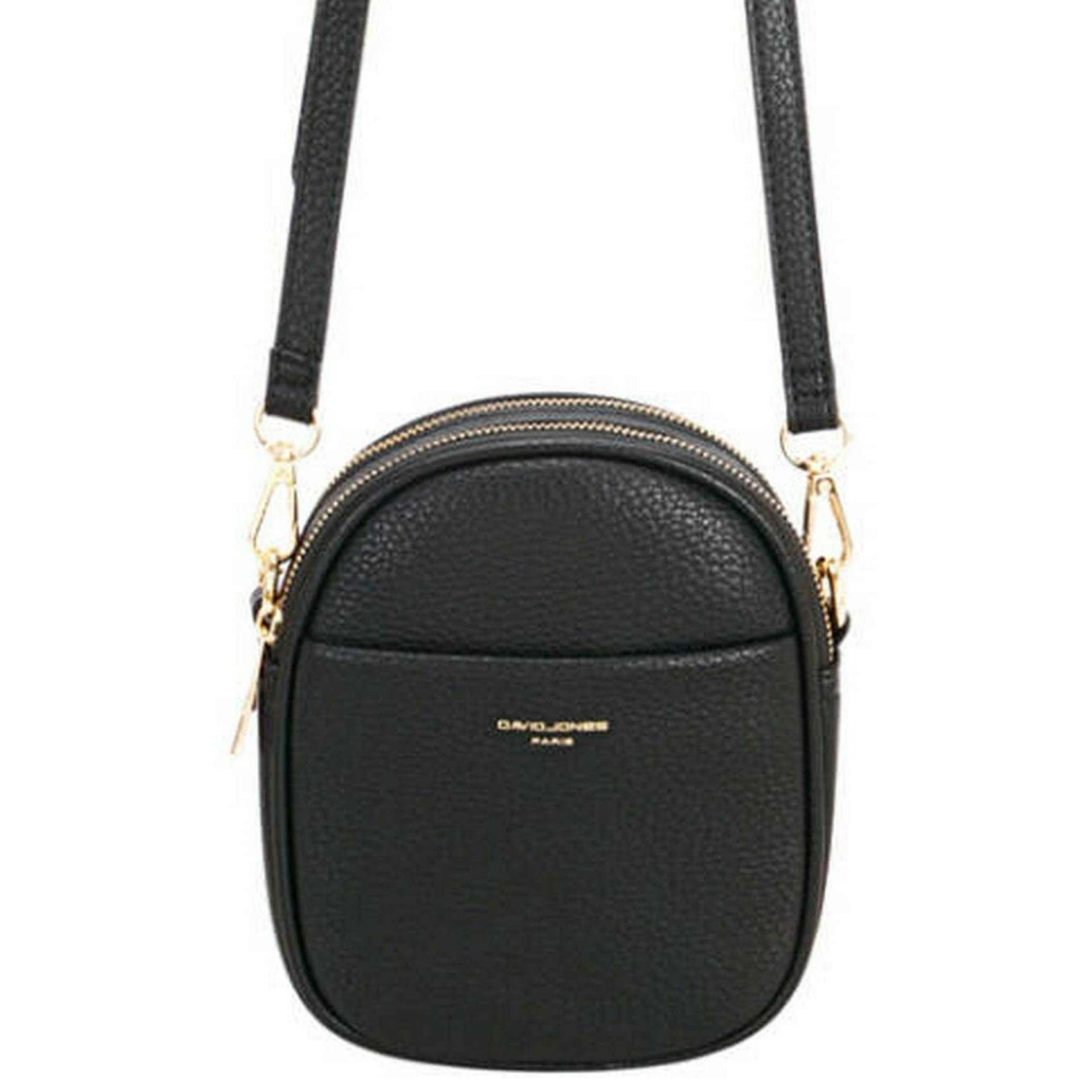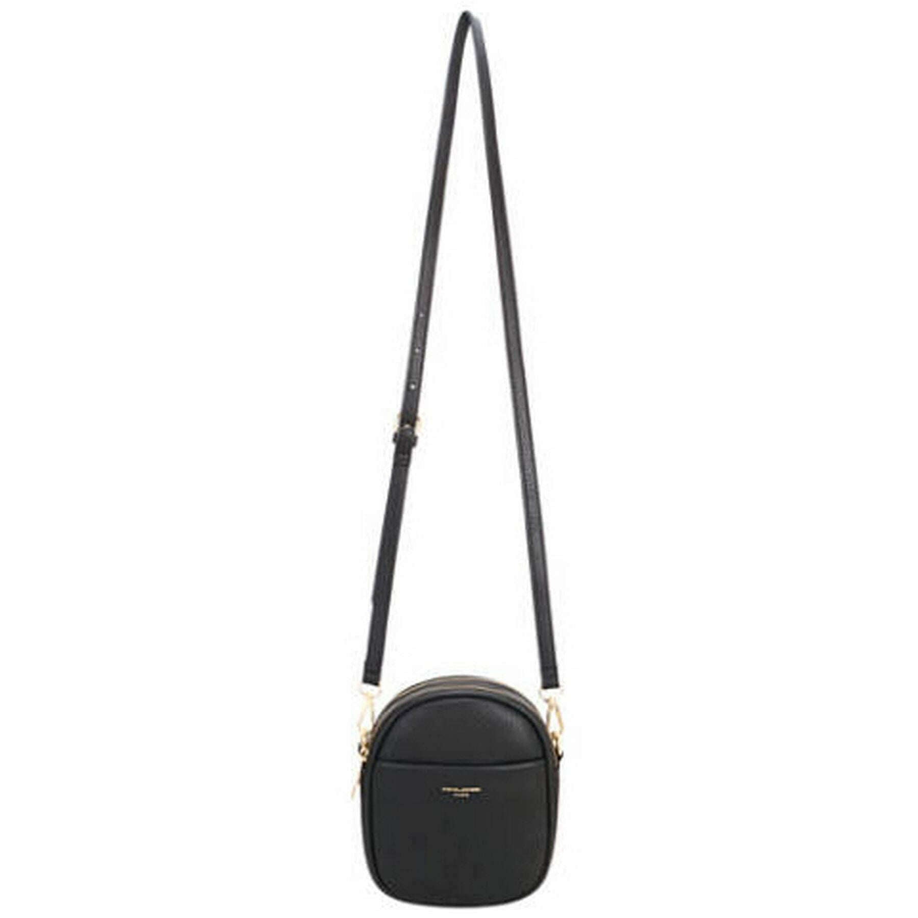 Presentamos este bolso bandolera pequeño con doble cremallera para mujer de David Jones, está fabricado en 100% poliuretano en color negro. Mide 19 cm (alto) x 15 cm (ancho) x 5 cm (profundidad). Todas las bolsas vienen completas con el embalaje de David Jones. El bolso cruzado pequeño con doble cremallera David Jones - Negro presenta un elegante logotipo de David Jones en el bolsillo delantero que es perfecto para guardar su teléfono o billetera para un acceso rápido y fácil. Tiene un bolsillo frontal con puntos magnéticos, cremallera interna y bolsillos abiertos, una parte superior con doble cremallera y correas ajustables/desmontables que garantizan que el bolso sea cómodo para todos.