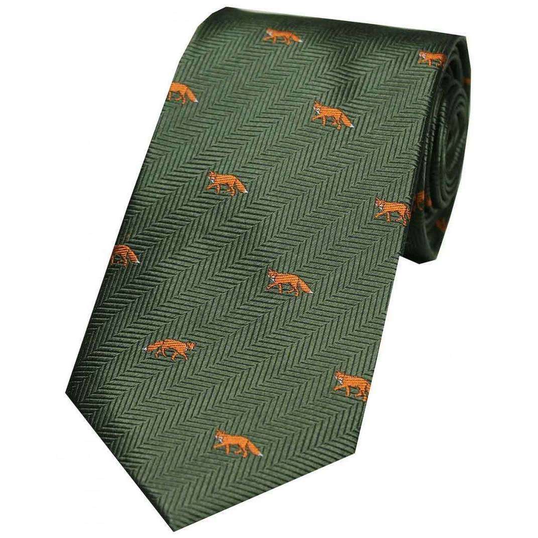 David Van Hagen Foxes Country Silk Tie - Verde/Orange