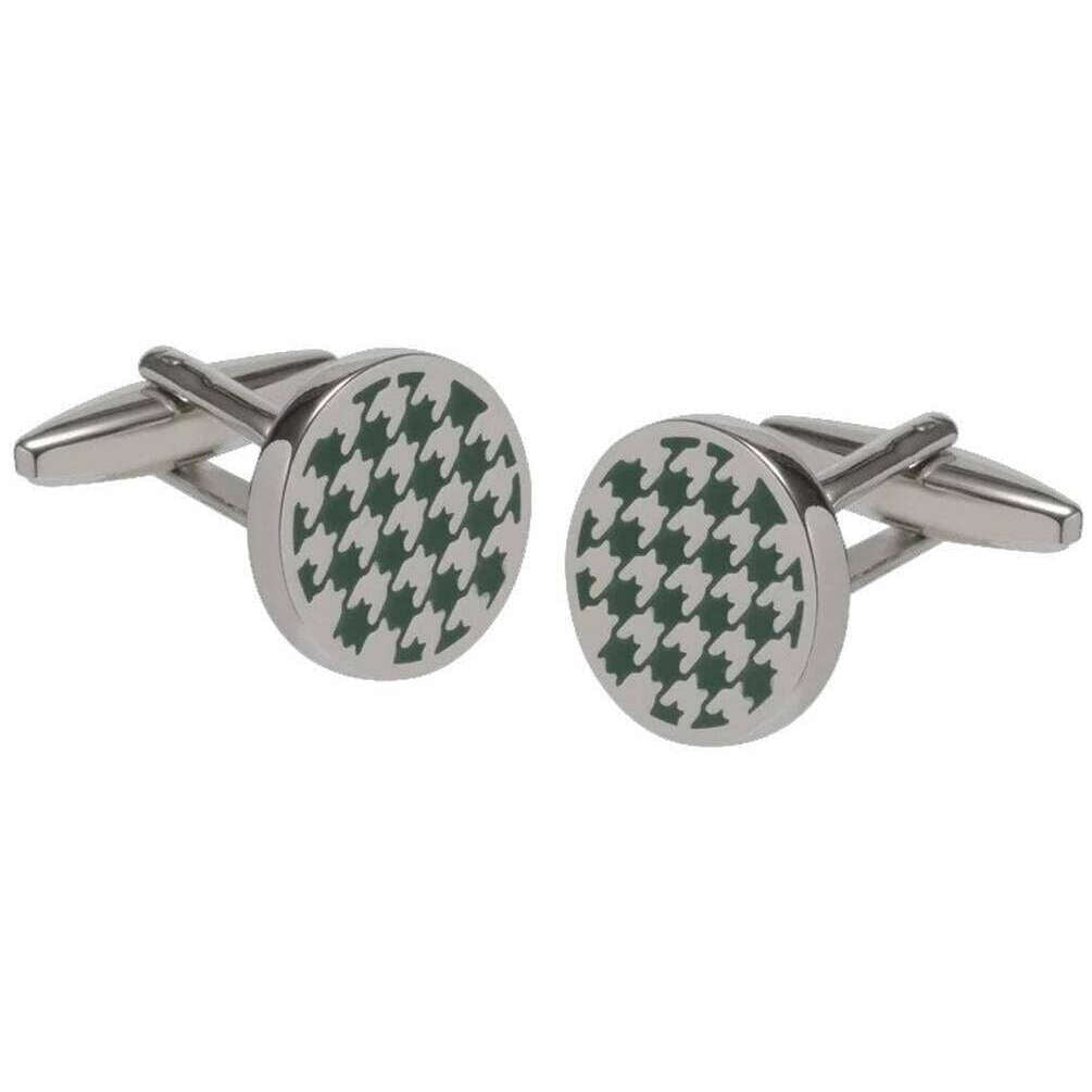 Estos gemelos de pata de gallo para hombre están hechos de metal común, se presentan en color plateado y son de la marca David Van Hagen. Todos los gemelos vienen completos con el embalaje de David van Hagen. Los gemelos David Van Hagen Houndstooth - Verde/Plata emiten un diseño único e impresionante que seguramente impresionará en muchas ocasiones. Estos gemelos son perfectos para que un caballero elegante los agregue a su colección, ya que complementarán cualquier atuendo. Presentan un diseño poco común de pata de gallo plateado y verde.