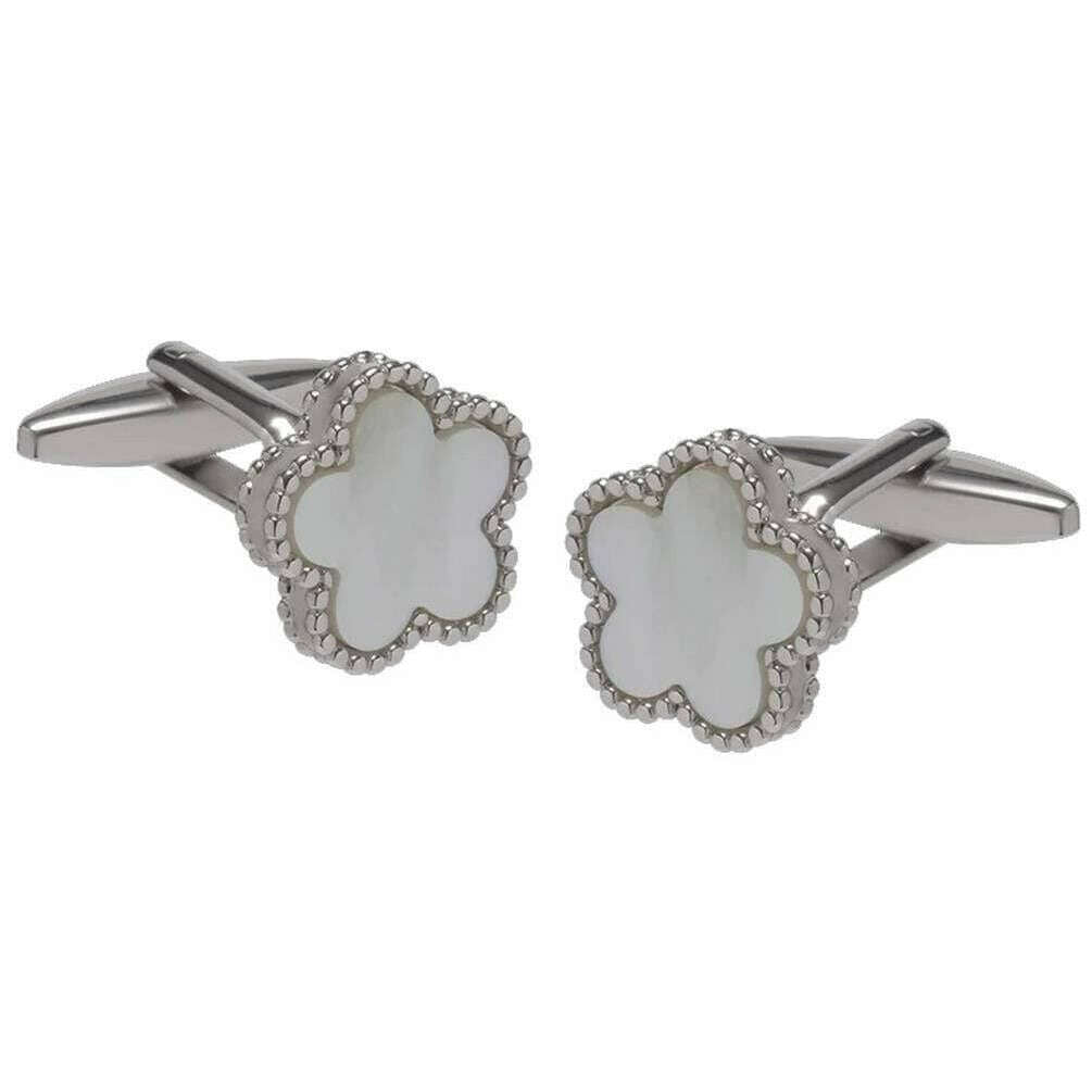 Gemelos con flores de nácar de David Van Hagen - Blanco/Plata