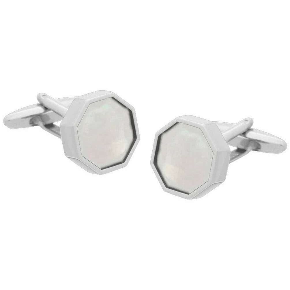 Gemelos octogonales de nácar de David Van Hagen - Blanco/Plata