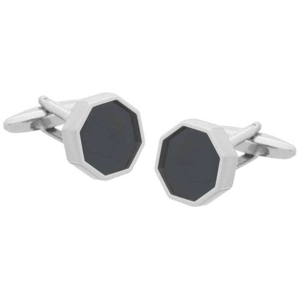 Gemelos octogonales de ónix de David Van Hagen - Negro/Plata