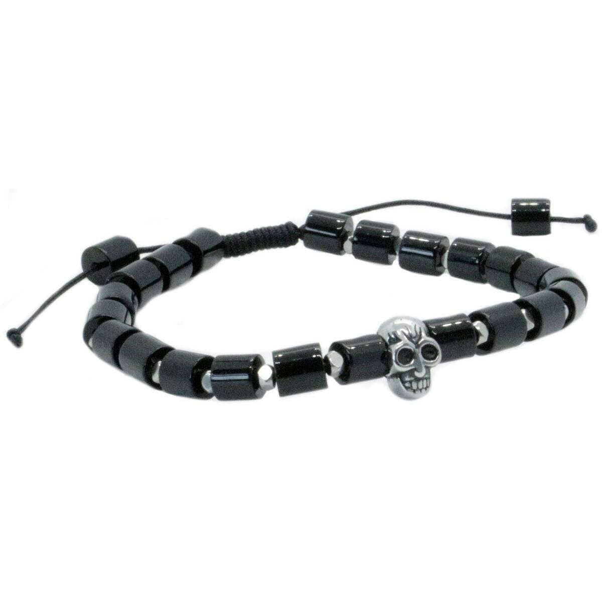 Pulsera de ágata con cuentas de calavera de David Van Hagen - Negro
