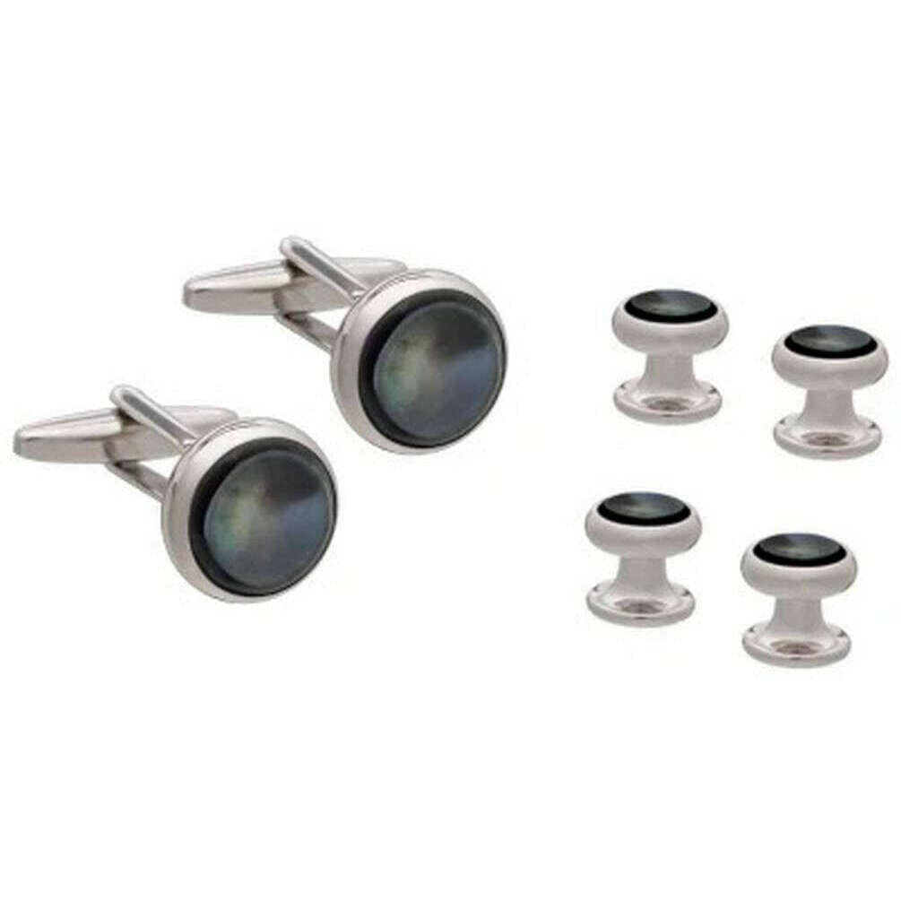 Juego de gemelos y tachuelas para vestido de nácar ahumado de David Van Hagen - Gris/Plata