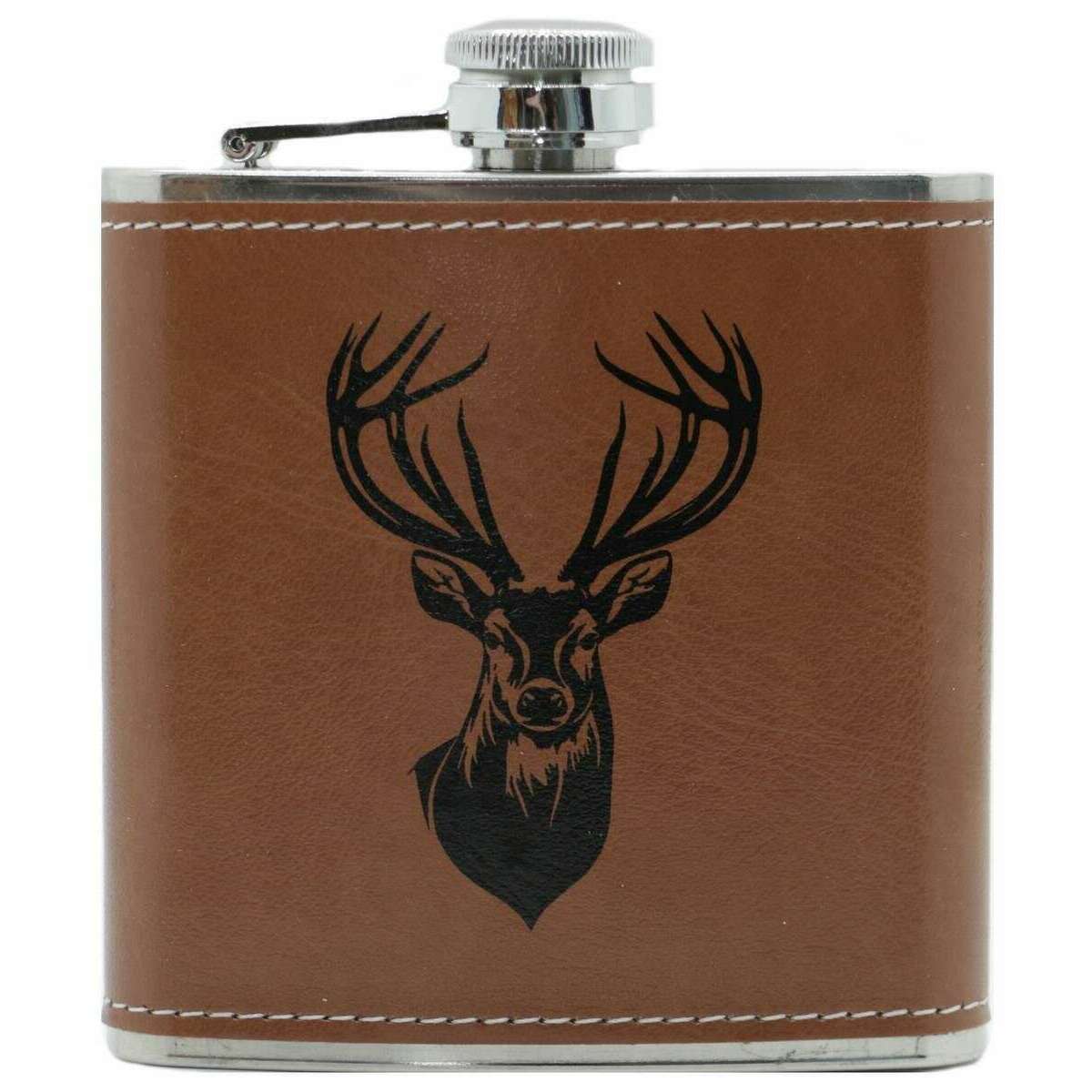 Este frasco de cadera de 6 oz de diseño masculino de 6oz ha sido hecho de acero inoxidable, presentado en un color bronceado y es de la marca David van Hagen. Todos los frascos de la cadera se completan en la caja de regalo de David Van Hagen. El diseño de cadera de 6oz de David Van Hagen Stag - Brown/Silver es el accesorio ideal para llevar con usted para recargar el licor. Asegurado con un tornillo clásico sobre la tapa, tu espíritu favorito es seguro por dentro. Este frasco no derramará las cosas buenas. Durable y encerrado en una hermosa manga de cuero de cuero, puede estar asegurado de que envejecerá como un buen vino. Este matraz de 6oz también haría una excelente elección de regalo.