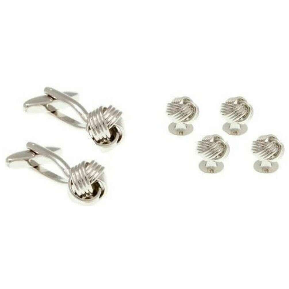 Juego de gemelos y tachuelas para vestido con nudo tejido de David Van Hagen - Plateado