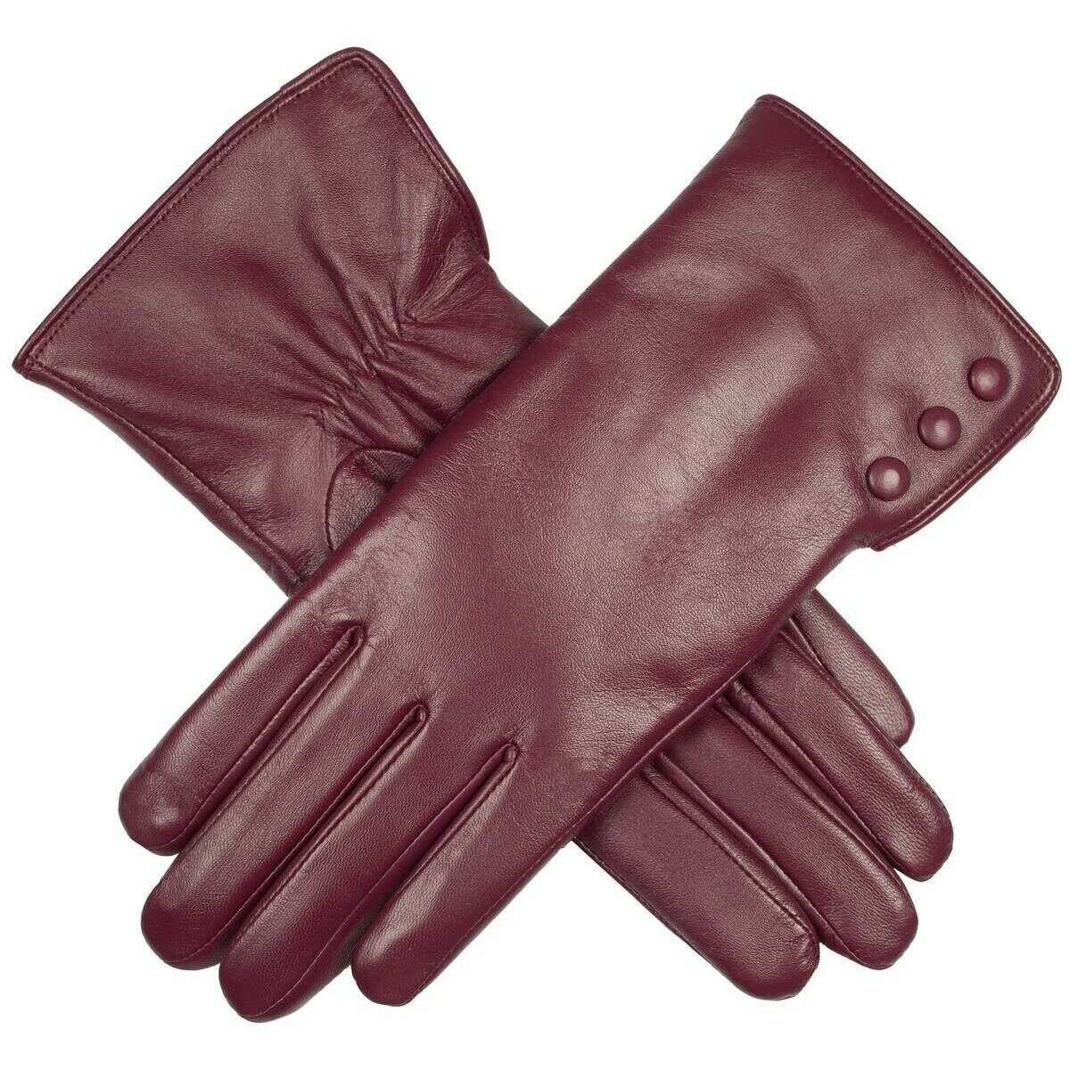 Estos guantes de mujer de piel agata resistente al agua han sido confeccionados 100% piel de oveja y forro de pelo sintético de poliéster, se presentan en color burdeos y son de la marca Dents. Además, los guantes color burdeos están diseñados con un patrón liso. Todos los guantes vienen completos con etiquetas para abolladuras. Los guantes de cuero resistentes al agua Dents Agata - Damson Burgundy son un accesorio lujoso y elegante, perfecto para agregar sofisticación y comodidad a cualquier atuendo. El interior de estos guantes está forrado con suave piel sintética que añade una capa de calidez y mejora la comodidad, lo que hace que sea un placer usarlos. Este par cuenta con tecnología de pantalla táctil que le permite utilizar su teléfono sin comprometer la calidez. Estos guantes son un complemento ideal para quienes buscan añadir un toque de elegancia y practicidad a su guardarropa de clima frío.