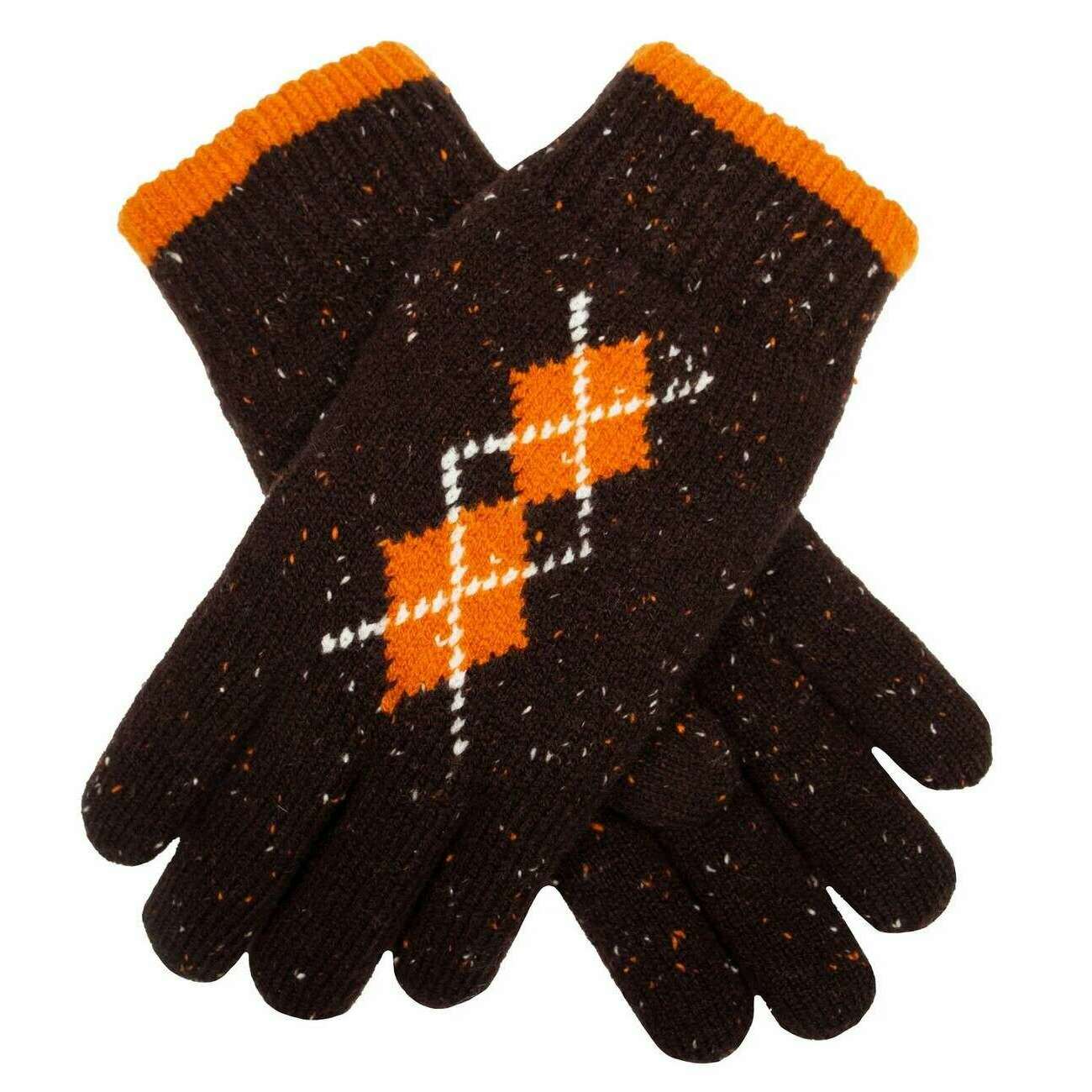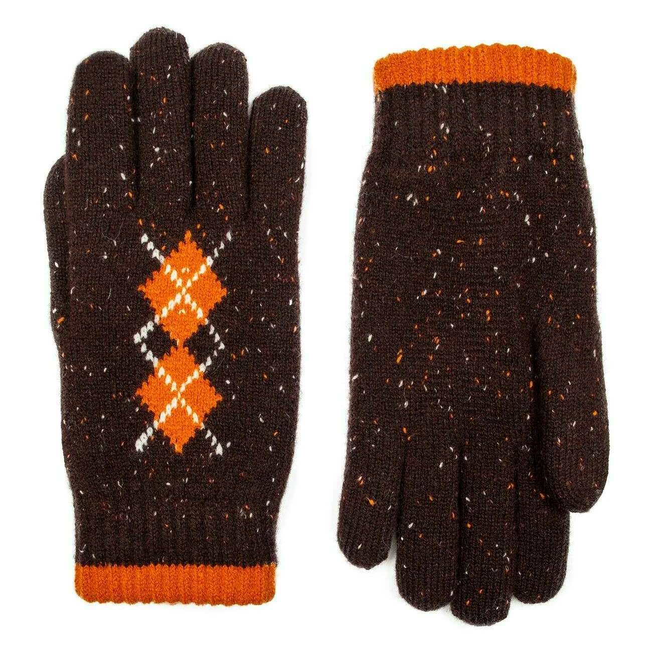 Guantes de punto de hilo marga argyle argyle - marrón chocolate/naranja de calabaza