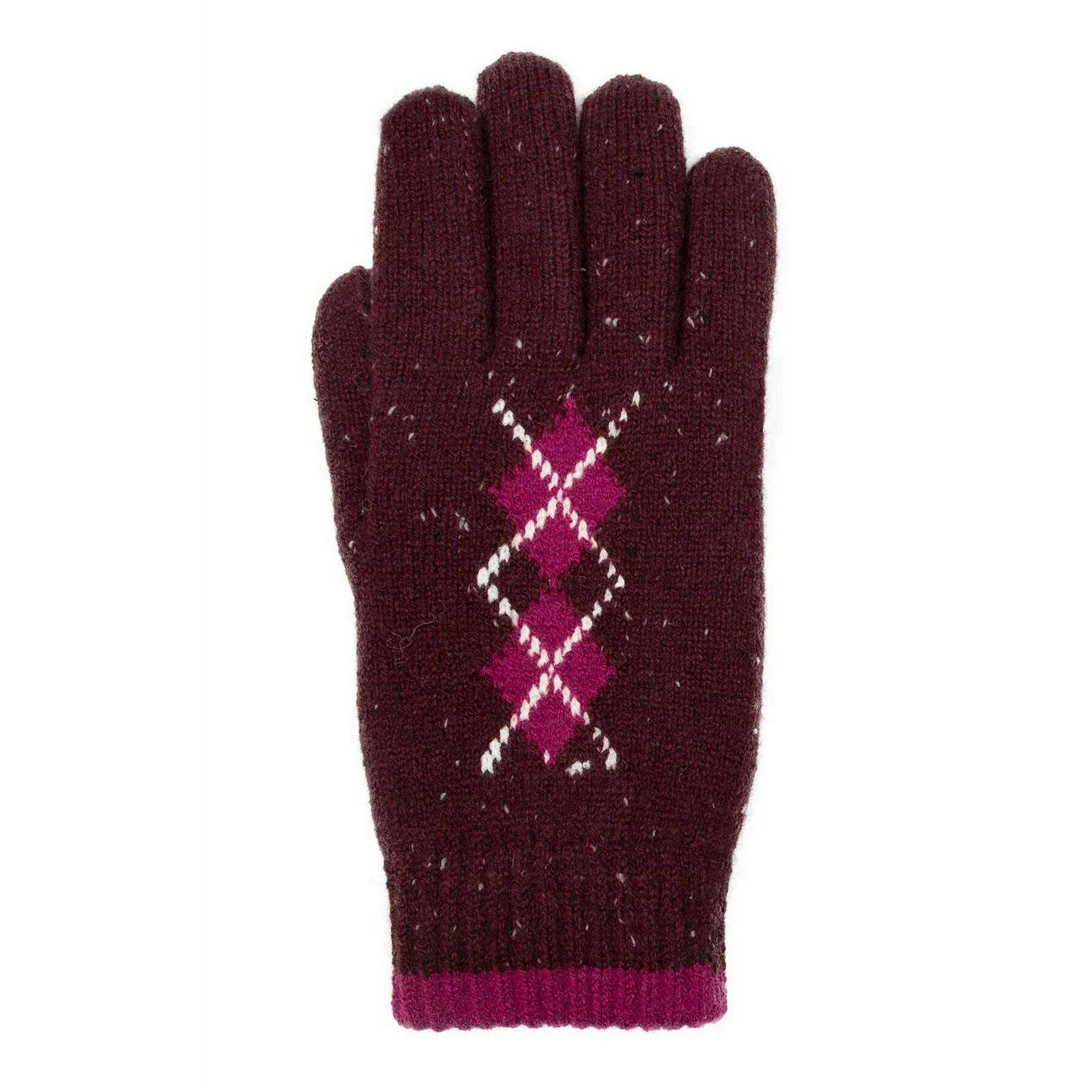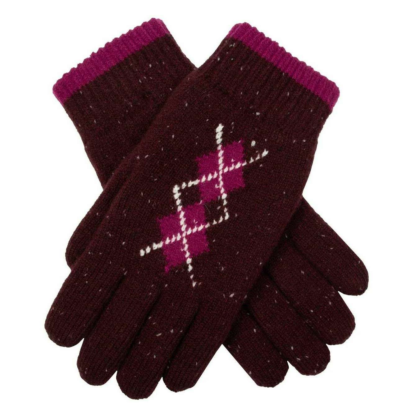 Guantes de punto de hilo marino de abolladuras - Damson Borgoña/Cassis Pink