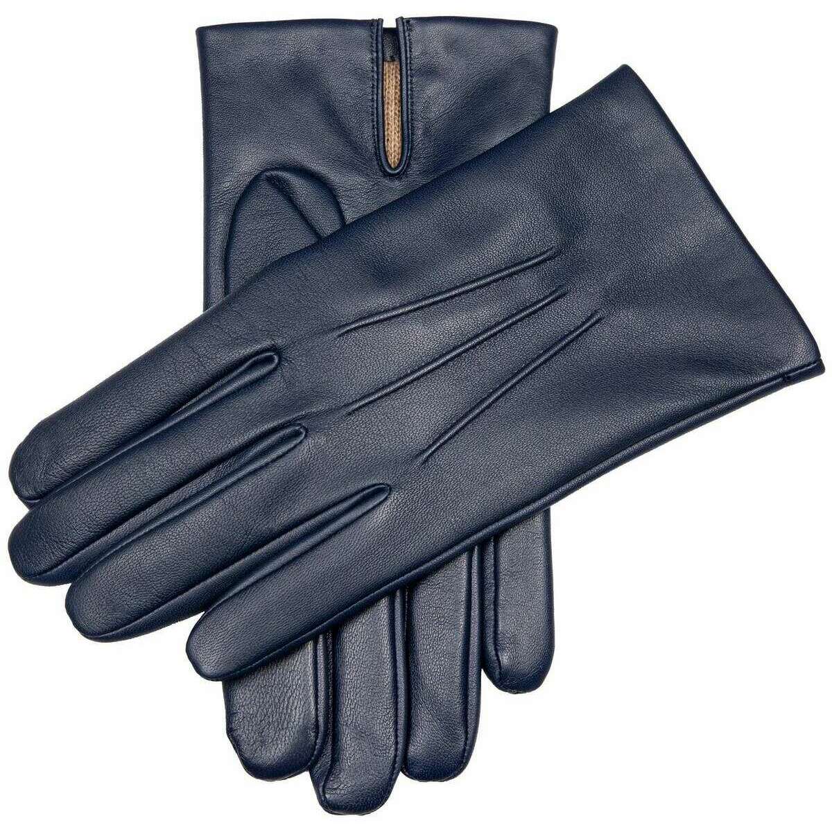 Dents Bath Guantes de cuero con forro de cachemira de tres puntos - Azul marino