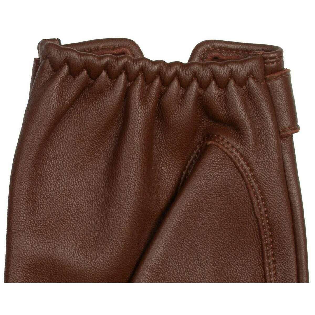 Perfectos para hombres son estos guantes de conducción de cuero Brooklands de Dents English Tan, también están hechos 100% de cuero de oveja. Además, los guantes color canela inglés están diseñados con un patrón liso. Todos los guantes vienen completos con etiquetas para abolladuras. Los guantes de conducción de cuero Dents Brooklands - English Tan ofrecen una variación de los guantes de conducción habituales, ya que no cuentan con la parte trasera recortada, lo que les da un acabado único. Los guantes cuentan con detalles intrincados, como orificios perforados en los dedos y las palmas, orificios para los nudillos y costuras en la entrepierna para un acabado limpio. Tiene una muñequera de cierre central con muñecas elásticas y un perno de cierre Dents para brindarle al usuario un ajuste seguro y cómodo.