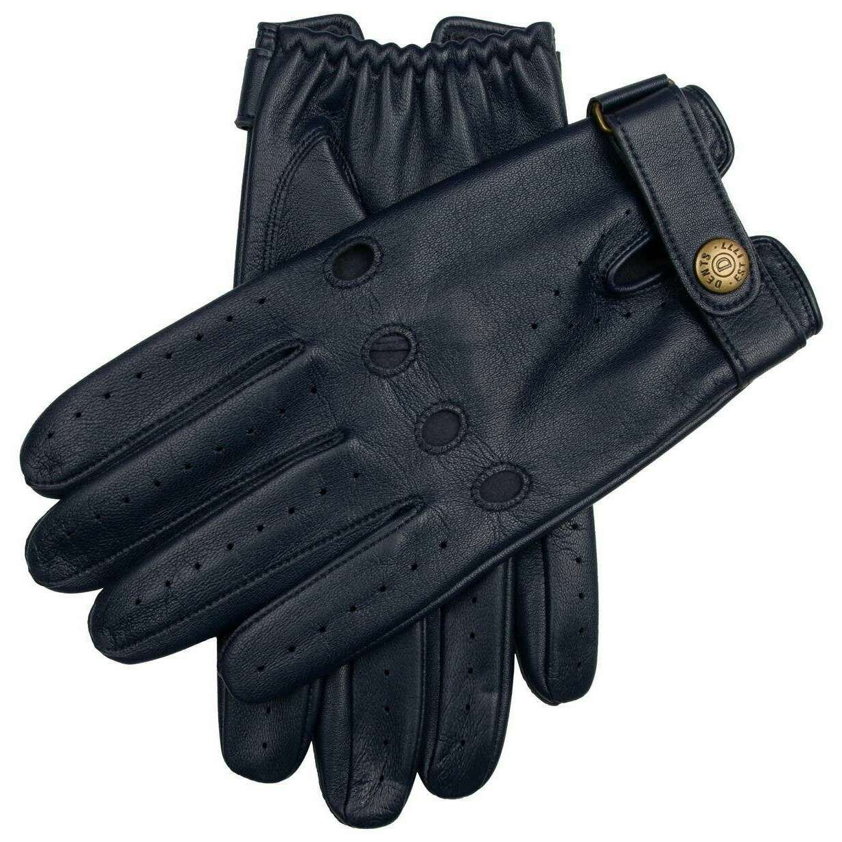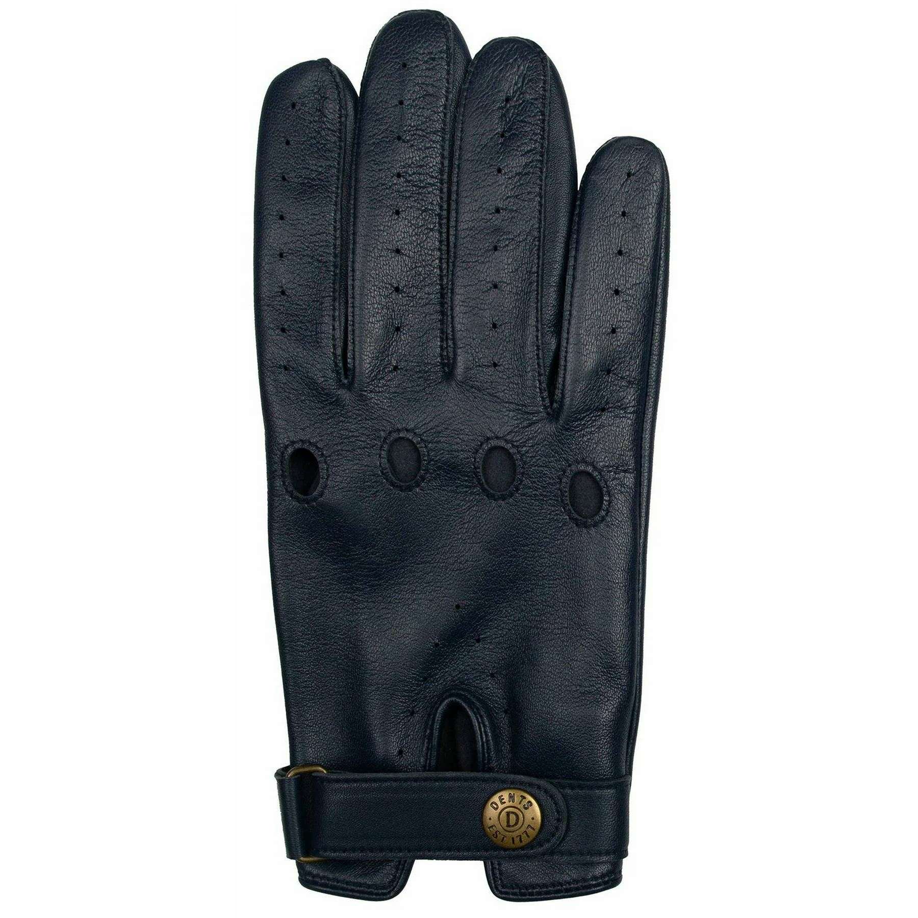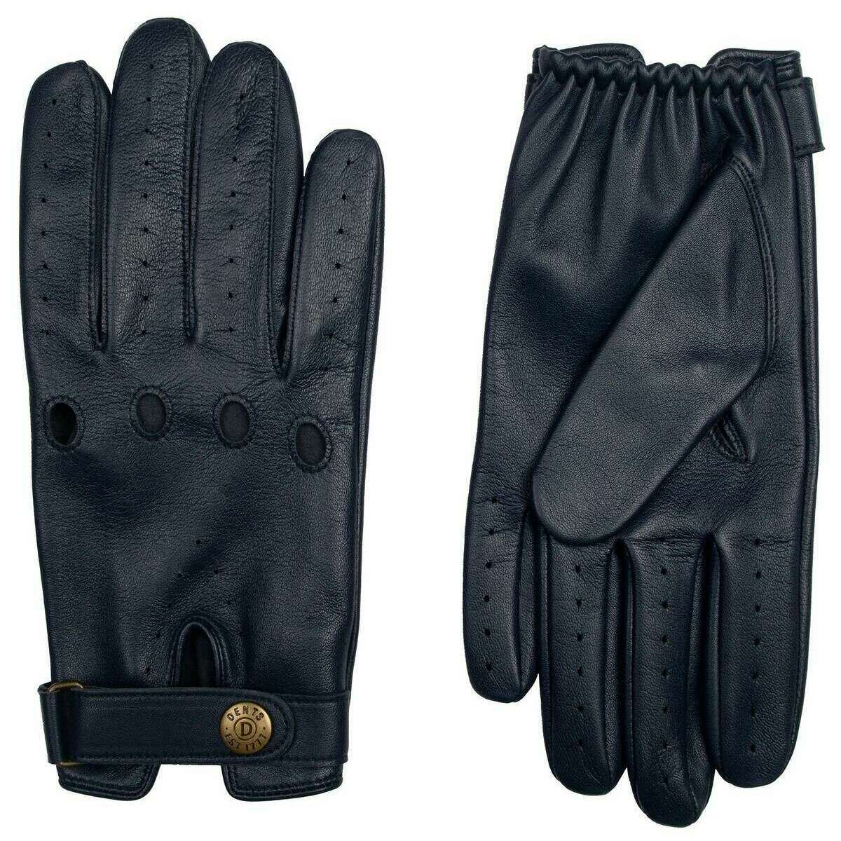 Estos guantes de conducción de cuero Brooklands de Dents, fabricados 100 % con piel de oveja de pelo azul marino, son perfectos para los hombres y son imprescindibles. Además, los guantes azul marino están diseñados con un patrón liso. Todos los guantes vienen completos con etiquetas para abolladuras. Los guantes de conducción de cuero Dents Brooklands - Azul marino ofrecen una variación de los guantes de conducción habituales, ya que no cuentan con la parte trasera recortada, lo que les da un acabado único. Los guantes cuentan con detalles intrincados, como orificios perforados en los dedos y las palmas, orificios para los nudillos y costuras en la entrepierna para un acabado limpio. Tiene una muñequera de cierre central con muñecas elásticas y un perno de cierre Dents para brindarle al usuario un ajuste seguro y cómodo.