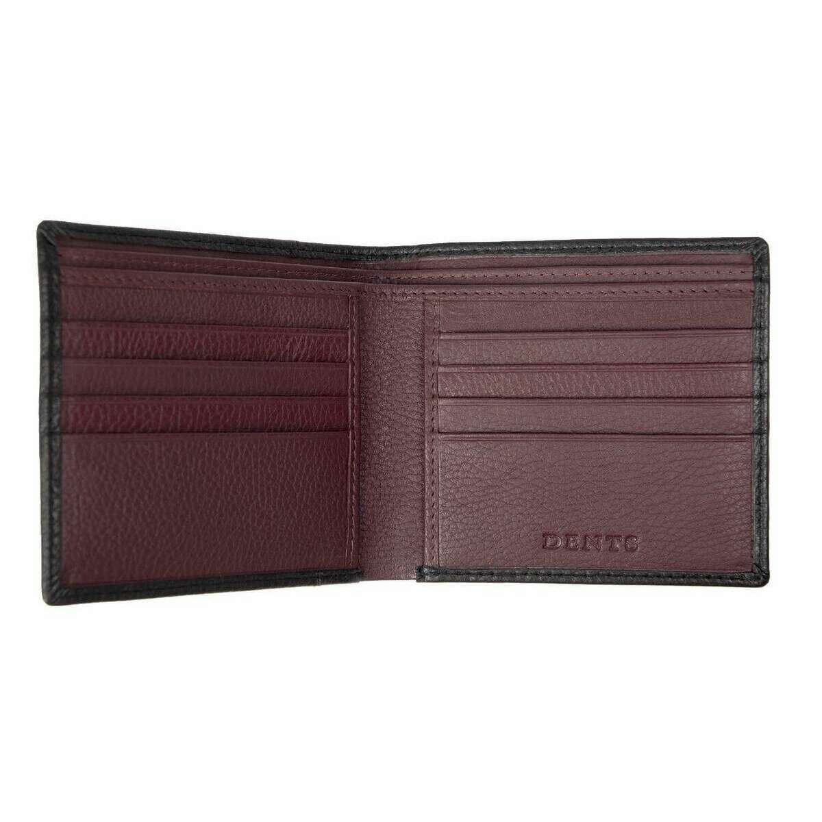 Esta billetera plegable delgada Cherwell para hombre está hecha de 100 % cuero flor granulado, se presenta en color negro y es de la marca Dents. Mide 10 cm (alto) x 11 cm (ancho). Todas las carteras vienen completas con etiquetas para abolladuras. La billetera plegable delgada Dents Cherwell - Negro/Burdeos burdeos cuenta con ocho bolsillos para tarjetas, dos secciones para billetes y dos bolsillos abiertos. ¡Esta billetera plegable es el regalo perfecto! El panel interior tiene el logotipo de Dents en relieve que le da a la billetera un aspecto sofisticado. Forrado con tela de sarga de poliéster para una apariencia suave y elegante, este elegante accesorio tiene una elegancia informal.