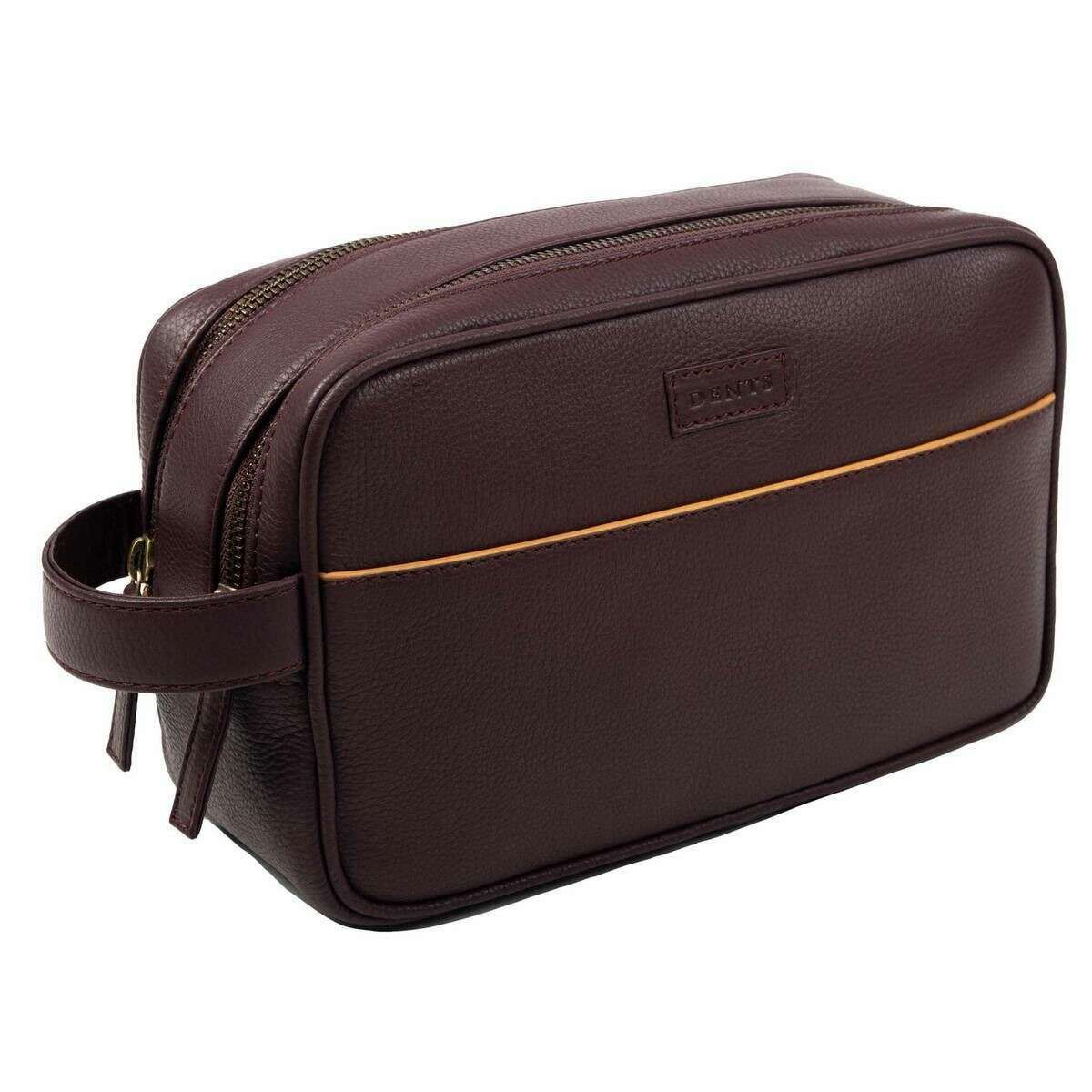 Perfecto para los hombres es este neceser Dents color burdeos/bronceado claro, también está hecho de 100% cuero granulado. Mide 25 cm (alto) x 15 cm (ancho) x 10 cm (profundidad). Todas las bolsas vienen completas con etiquetas para abolladuras. El neceser Dents Cherwell - Bordeaux Burgundy/Light Tan será perfecto para el uso diario y un práctico compañero en tus viajes. Tiene dos grandes compartimentos separados con cremallera y bolsillos interiores. Este bolso es fácil de transportar gracias a un asa lateral de cuero y también es resistente al agua. El exterior del bolso tiene el logo de Dents en relieve para una apariencia sofisticada.