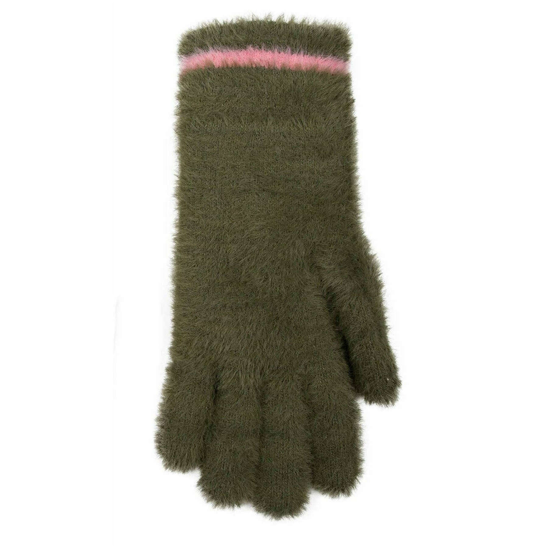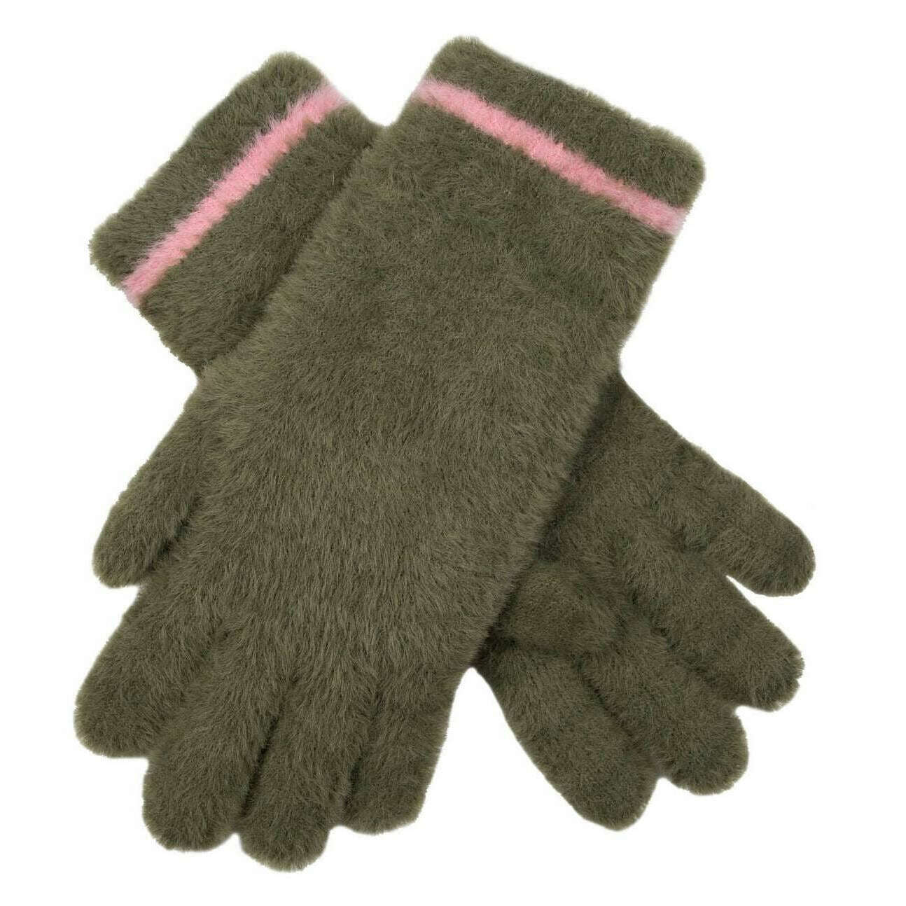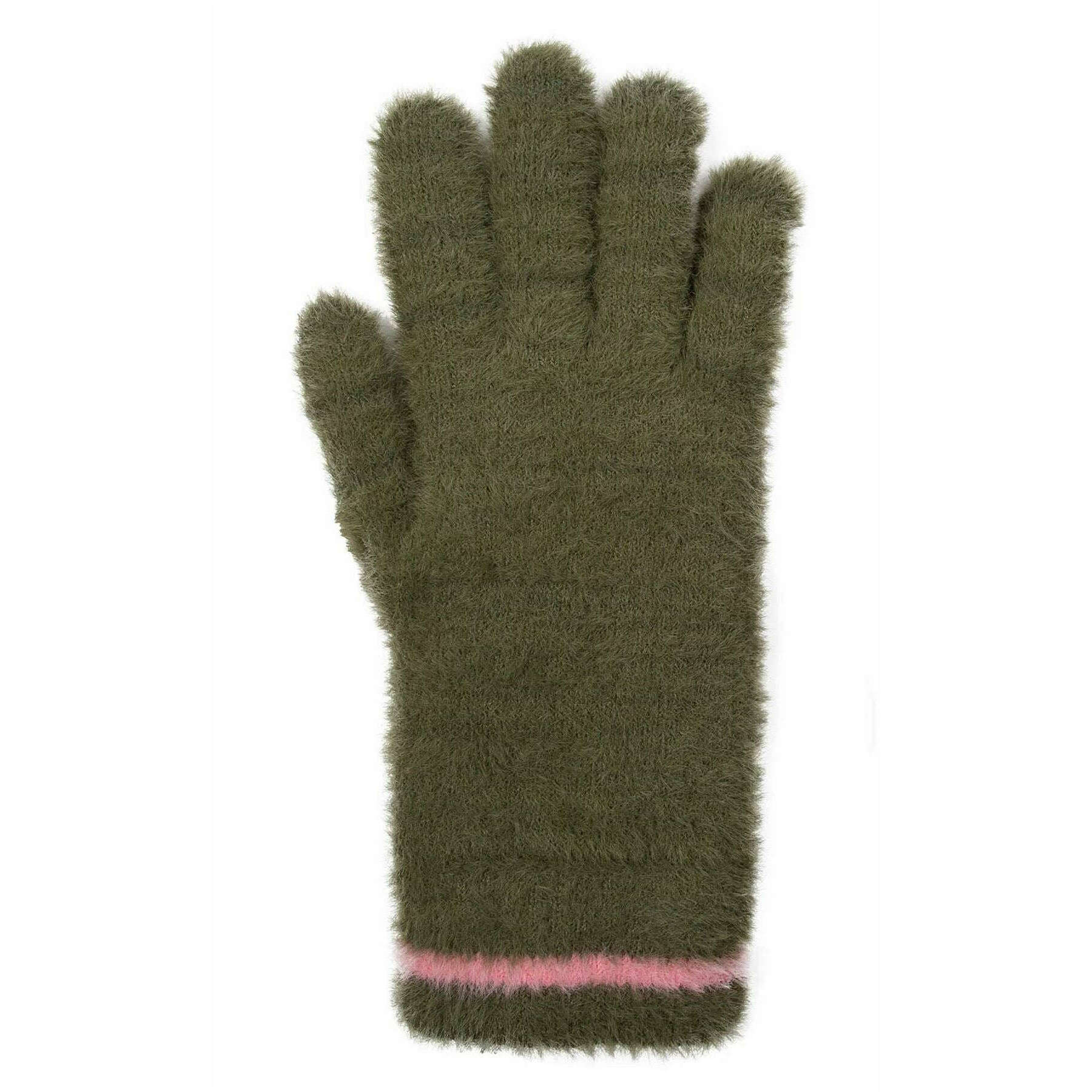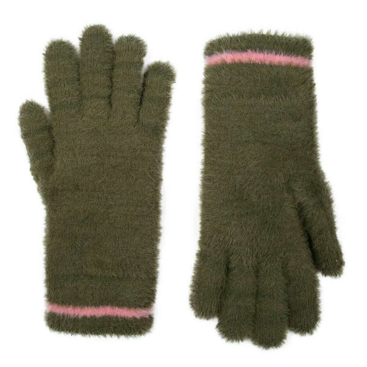Guantes de punto de hilo de plumas de abolladuras - verde/rosa
