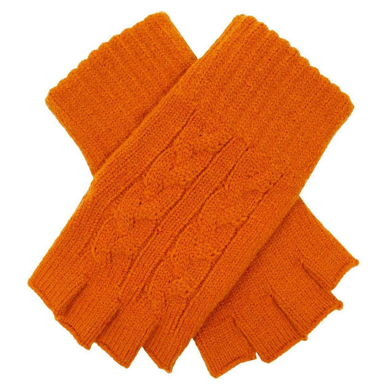Guantes de punto de cable sin dedo de abolladuras - naranja de calabaza