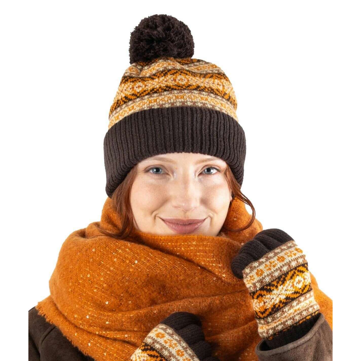 Gorro con pompón de punto Fair Isle de jacquard Dents - Marrón chocolate