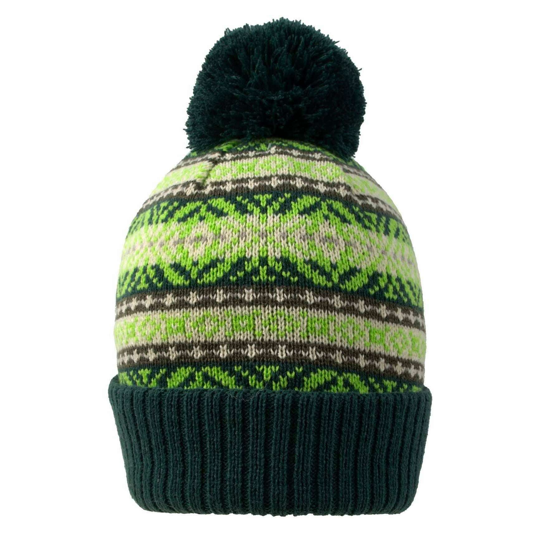 • Patrón Fair Isle en jacquard, pompón de hilo grande, ala vuelta hacia arriba