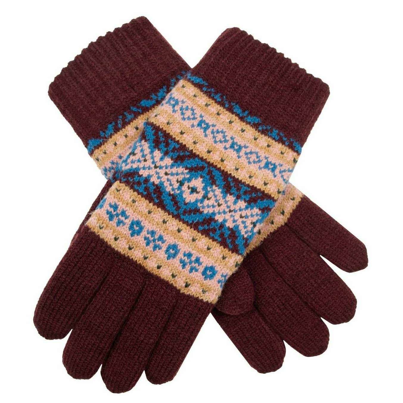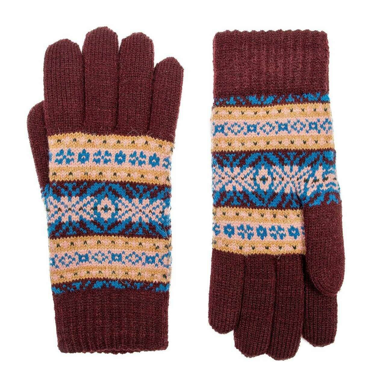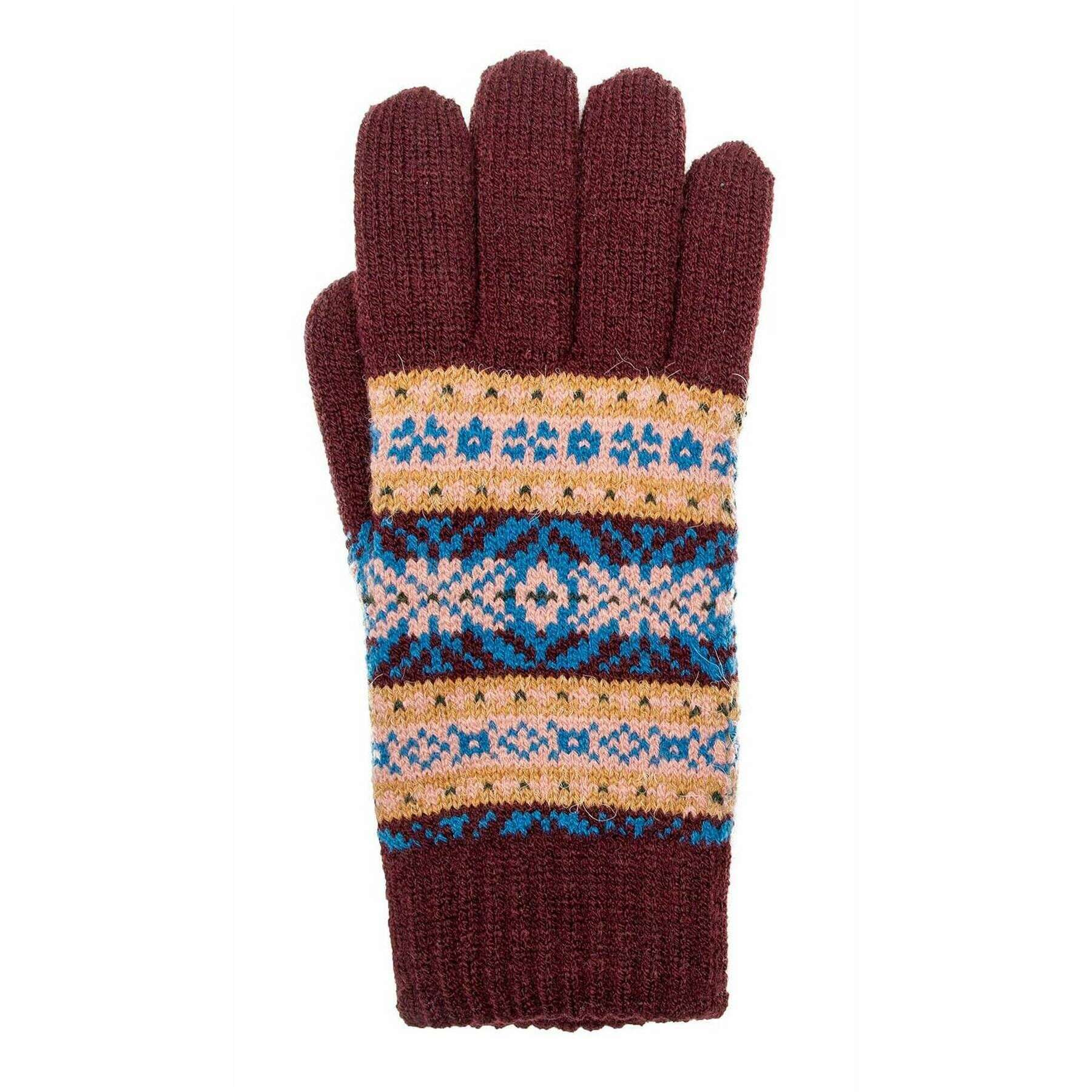 Dents Jacquard Fair Isle Guantes de punto - Damson Borgoña