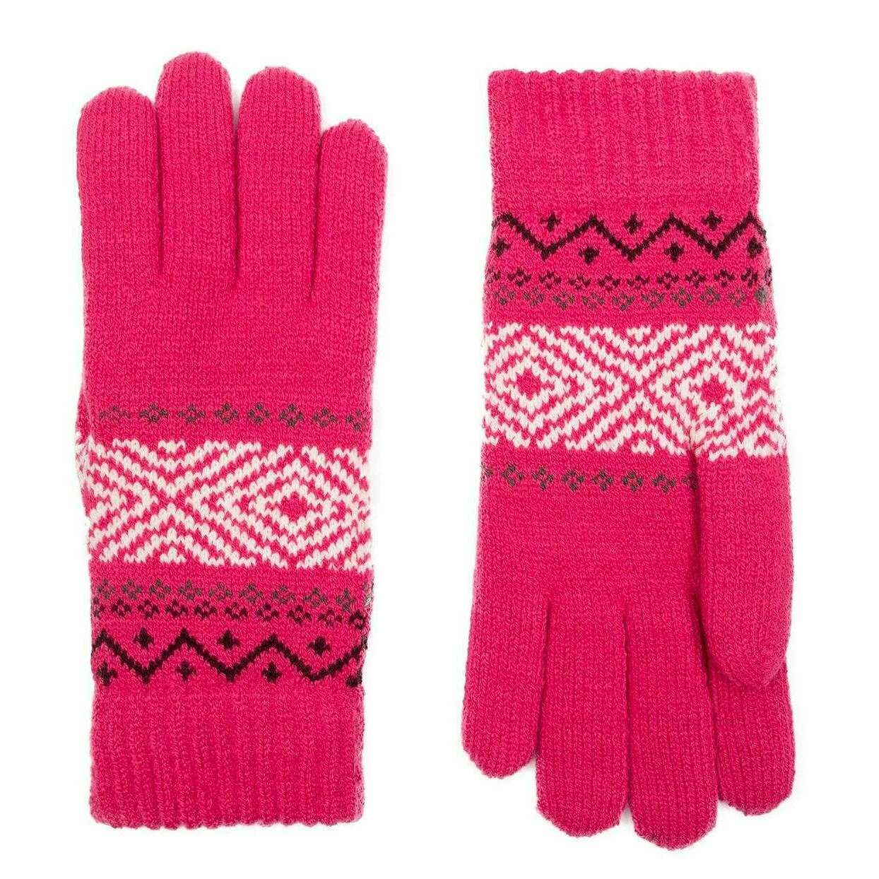 Guantes de punto geométricos de abolladuras Jacquard - Fuchsia Pink