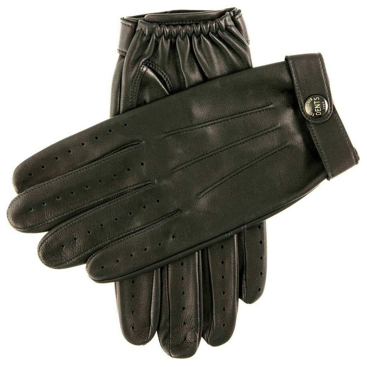 Estos guantes de conducción mendes Heritage para hombre están diseñados por la marca Dents en color negro y están fabricados 100% con piel de oveja. Además, los guantes negros están diseñados con un patrón liso. Todos los guantes vienen completos con etiquetas para abolladuras. Los guantes de conducción Dents Mendes Heritage - Negros ofrecen una variación de los guantes de conducción habituales, ya que no cuentan con la parte trasera recortada, lo que les da un acabado único. Los guantes cuentan con detalles intrincados, como orificios perforados en los dedos y las palmas, orificios para los nudillos y costuras en la entrepierna para un acabado limpio. Tiene una muñequera de cierre central con muñecas elásticas y un perno de cierre Dents para brindarle al usuario un ajuste seguro y cómodo.