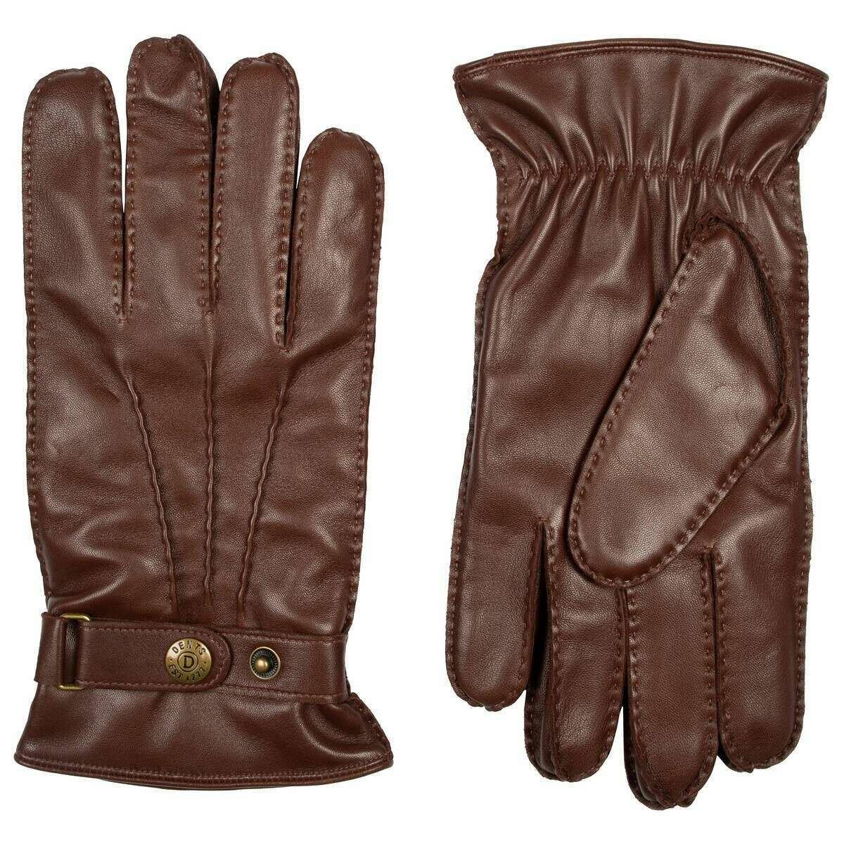 Dents Tetbury Guantes de cuero de tres puntos cosidos a mano - Marrón castaño
