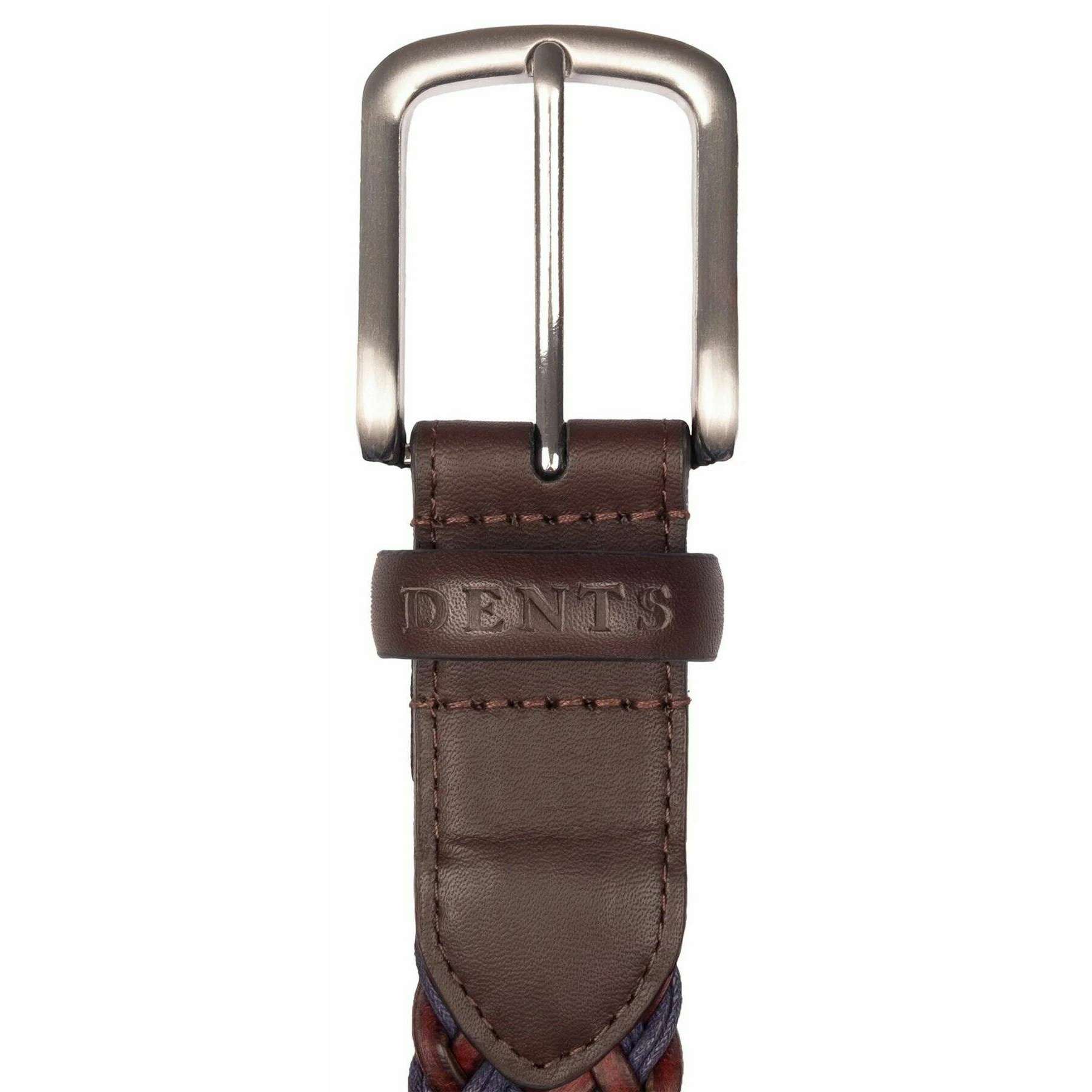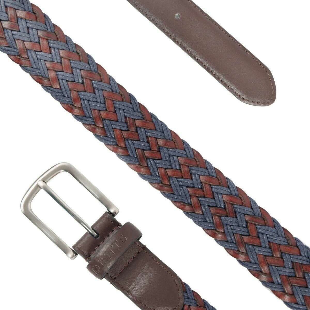 Este cinturón tejido de cuero y algodón para hombre ha sido confeccionado 100% en cuero, se presenta en color azul y es de la marca Dents. Todos los cinturones vienen completos con etiquetas para abolladuras. El cinturón tejido de cuero y algodón Dents - Azul es una opción ideal si buscas darle un toque de estilo a tu guardarropa. Su estructura trenzada le da un aspecto general impresionante que complementará perfectamente tu atuendo tanto en ocasiones informales como formales. Este cinturón presenta una única trabilla de cuero, accesorios de color níquel satinado y no está forrado.