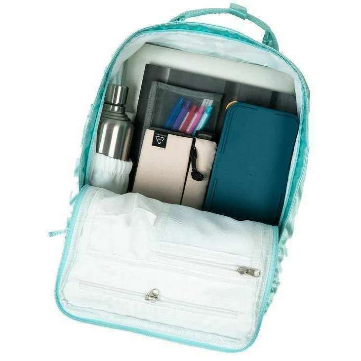 Esta mochila femenina de Girlitude de Macaroon ha sido hecha de 100% de nylon, que aparece en un color azul y proviene de la marca Donut. Mide 38 cm (altura) x 27 cm (ancho) x 13cm (profundidad). Se recomienda limpiar con un paño húmedo, no lavar, no limpiar en seco, no blanquearse, no caer seco para mantener esta bolsa en buenas condiciones. Todas las bolsas se completan en el embalaje de donas. La mochila Donut Macaroon Girlitude - Moonstone Blue es un impresionante accesorio cotidiano que se desactivará el estilo elegante y femenino mientras lleva sus elementos esenciales cuando está fuera de casa. Se ha hecho de un material repelente al agua que garantiza que pueda soportar todo tipo de clima y no se arruinará bajo la lluvia. Tanto externamente como internamente, esta pieza presenta muchos compartimentos y bolsillos, incluida una botella de agua y un compartimento de tableta. Terminar con un aspecto satinado, así como volantes decorativos, cintas y encantos, realmente será la mejor amiga de una niña. Esta pieza tiene una capacidad si 16L.