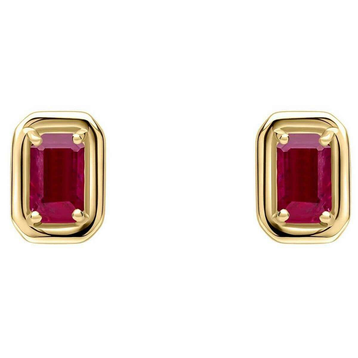 Pendientes de oro de 9 quilates con rubí y borde grueso de Elements Gold - Dorado/Rojo