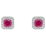 Pendientes de oro de 9 quilates con halo de diamantes y rubí de talla cojín de Elements Gold - Dorado/Rojo