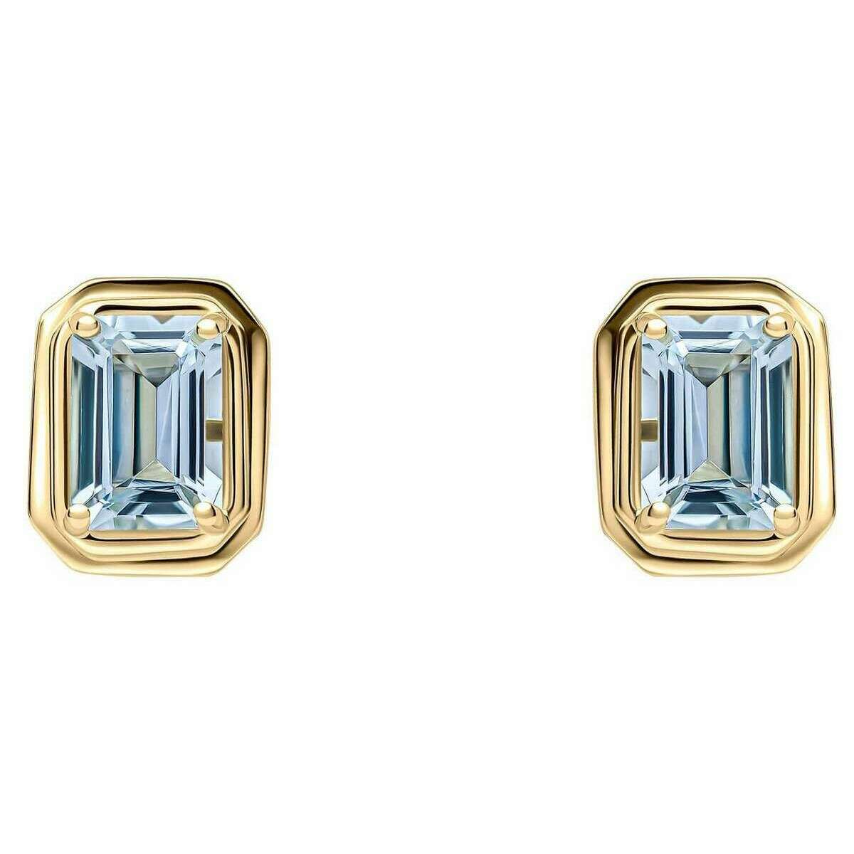 Aretes de oro de 9 quilates con aguamarina octogonal alargada de Elements Gold - Dorado/Azul
