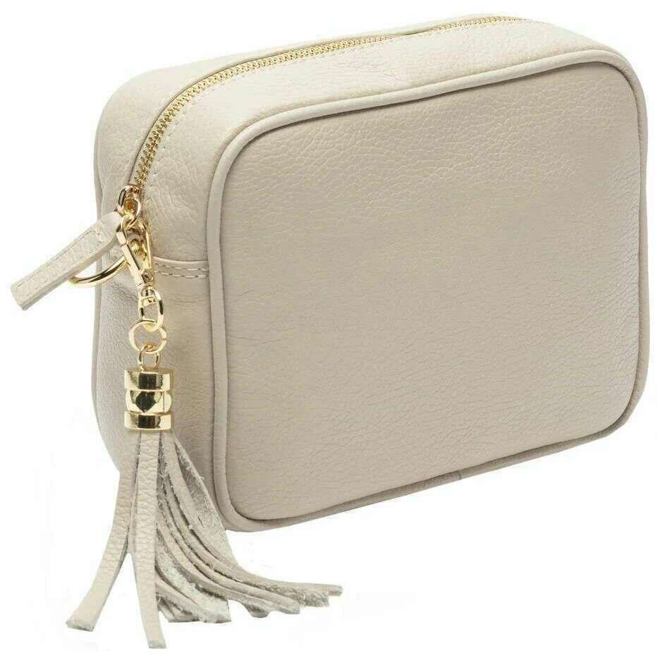 Esta bolsa Crossbody de mujeres de la marca Elie Beaumont está hecha de cuero premium 100% genuino y se exhibe en beige. Mide 15 cm (altura) x 20 cm (ancho) x 7cm (profundidad). Todas las bolsas vienen completas con el empaque de Elie Beaumont. La bolsa de Elie Beaumont Crossbody - Stone Beige de moda y versátil es imprescindible para agregar a su colección con las características hermosas y útiles. La correa del cuerpo desmontable se puede ajustar a su gusto dependiendo del atuendo y el aspecto que busca perfecto para todas las ocasiones. El compartimento principal y el bolsillo interior es ideal para un almacenamiento y una organización óptimos para mantener todo y más que necesite. La base reforzada de doble capa y las costuras laterales de doble costura aseguran que esta bolsa sea duradera y duradera. Hecho a partir de cuero genuino de grano premium se completa con hardware de oro y una borla desmontable a juego para un toque femenino.