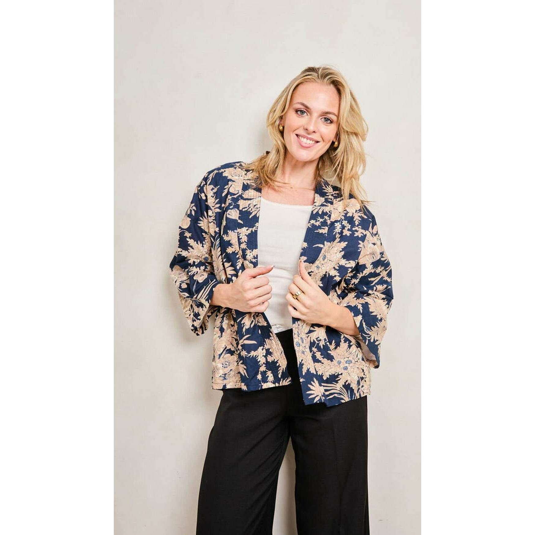 Presentamos este kimono corto serendipity para mujer de Elie Beaumont, está confeccionado en algodón 100 % natural en un color azul medianoche. Todas las chaquetas vienen completas con el embalaje de Elie Beaumont. ¡El kimono corto Serendipity de Elie Beaumont - Midnight Blossom Blue te brindará una apariencia realmente destacada que seguramente te encantará! Los colores llamativos y el diseño intrincado hacen que esta chaqueta kimono realmente destaque. Este kimono está totalmente forrado, es transpirable y tiene mangas largas.