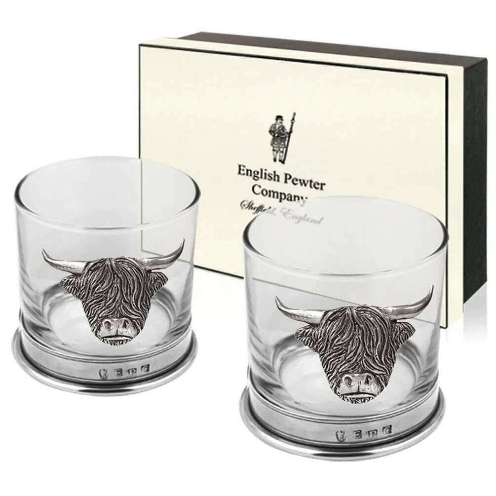 Inglés Pewter Company 11oz Set de vaso de vacas de las tierras altas Double - Silver/Clear