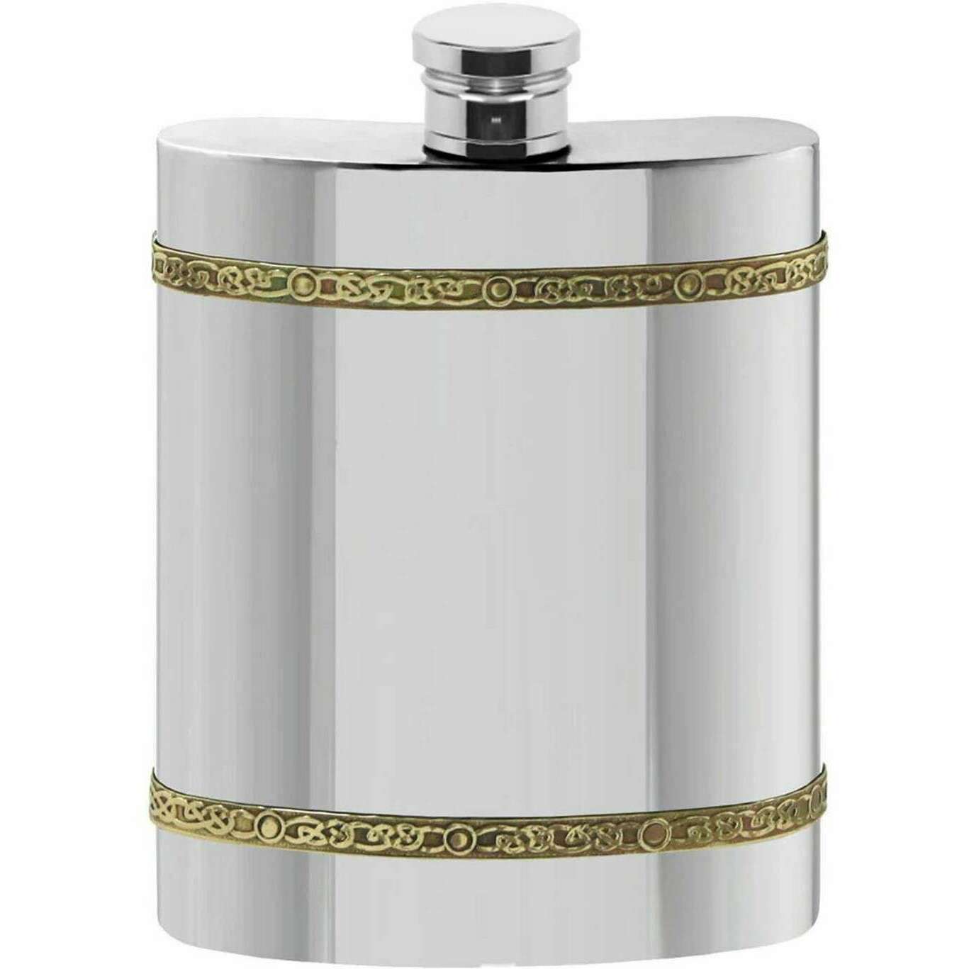 Inglés Pewter Company 6oz Celtic Brass Band Flask - Silver/Gold