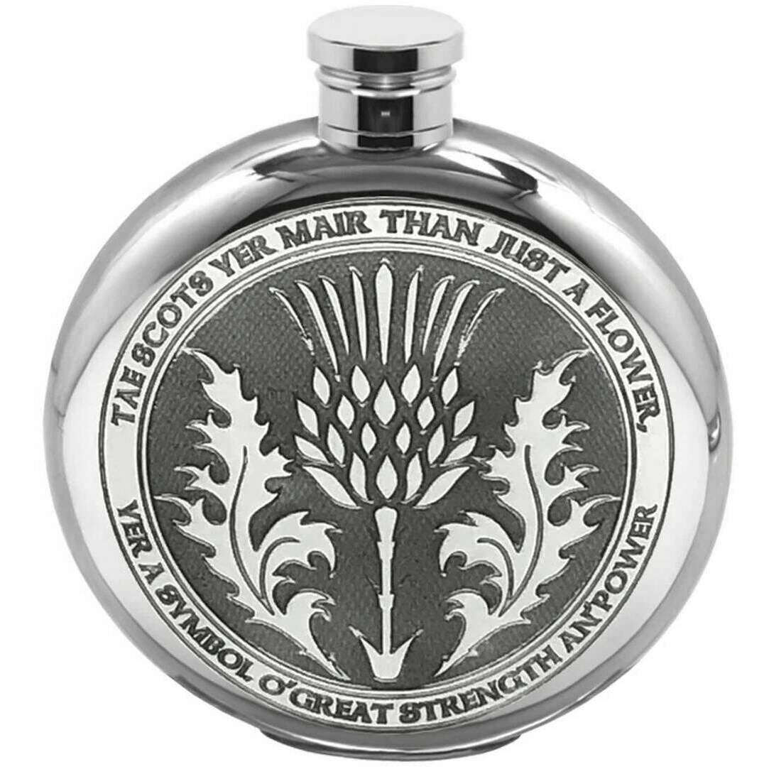 Este matraz redondeo unisex 6oz Tae, se ha hecho de peltre, presentado en un color plateado y proviene de la marca de peltre inglesa. Mide 11 cm (altura). Todos los matraces de la cadera se completan en una caja de regalo inglesa de la empresa de peltre. La compañía de peltre inglesa 6oz Tae A Thistle Round Flask - Silver será el compañero perfecto, almacenando su bebida favorita en estilo atemporal y calidad impecable. El tornillo de tornillo asegura que su bebida favorita esté segura en el interior con su sello a prueba de fugas, pero también asegurándose de que sea fácilmente accesible. Adornado con un diseño clásico, este matraz de cadera sería el regalo perfecto.
