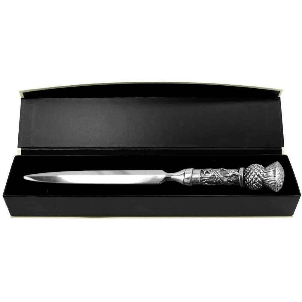 Fabricado desde Pewter es este abridor de letras de cardo unisex plateadas por la compañía de peluches de diseño inglés. Mide 21.5 cm (altura). Todos los accesorios de escritorio se completan en una caja de regalo de la compañía de peltre inglesa. El abridor de letras de Thistle de la compañía de peltre inglesa: Silver es un accesorio ideal para tener que mano cuando se trata de abrir su correo, dándole un corte limpio en lugar de las rasgaduras que obtienen cuando usa sus dedos. Es un método mucho más fácil hacer que la tarea sea mucho más eficiente.