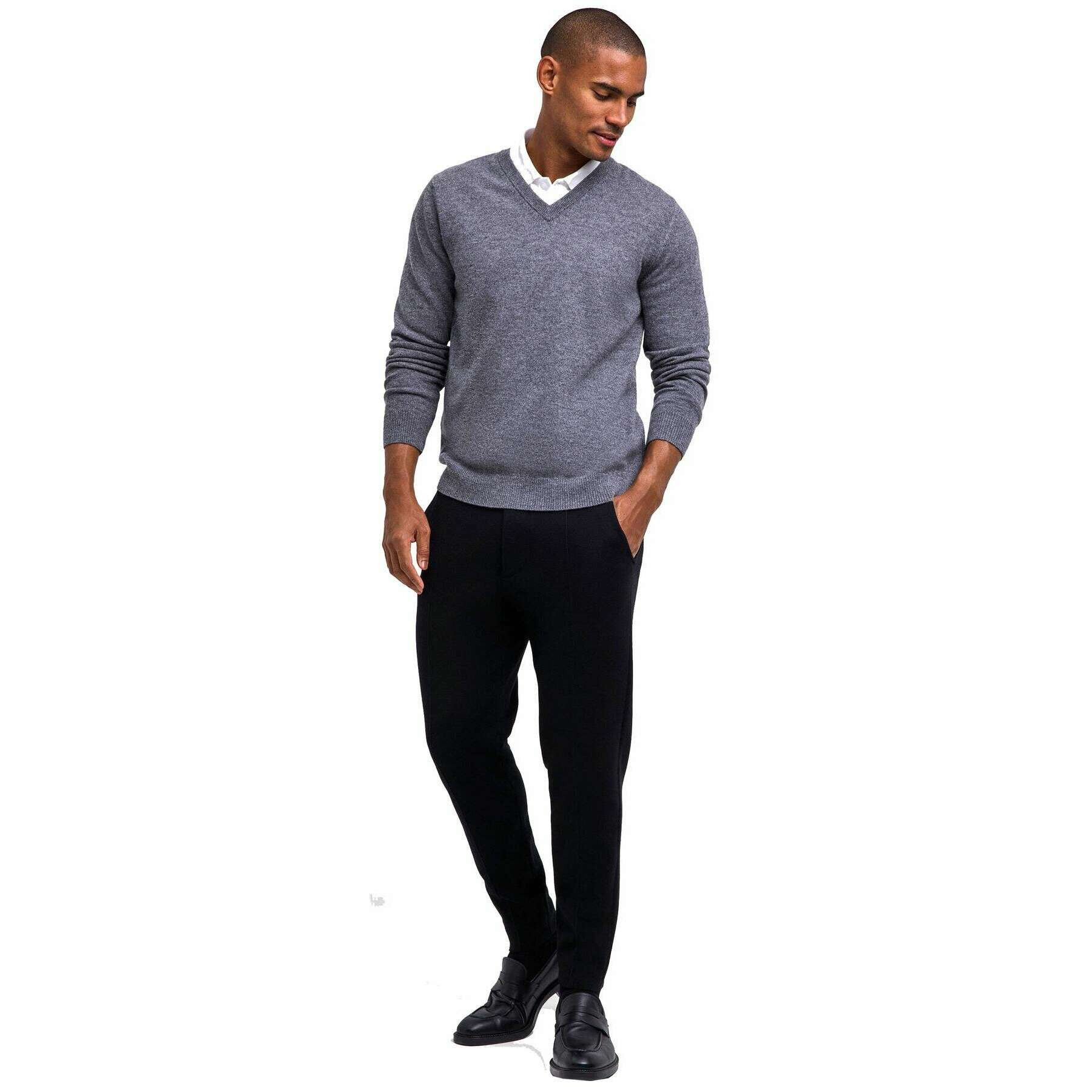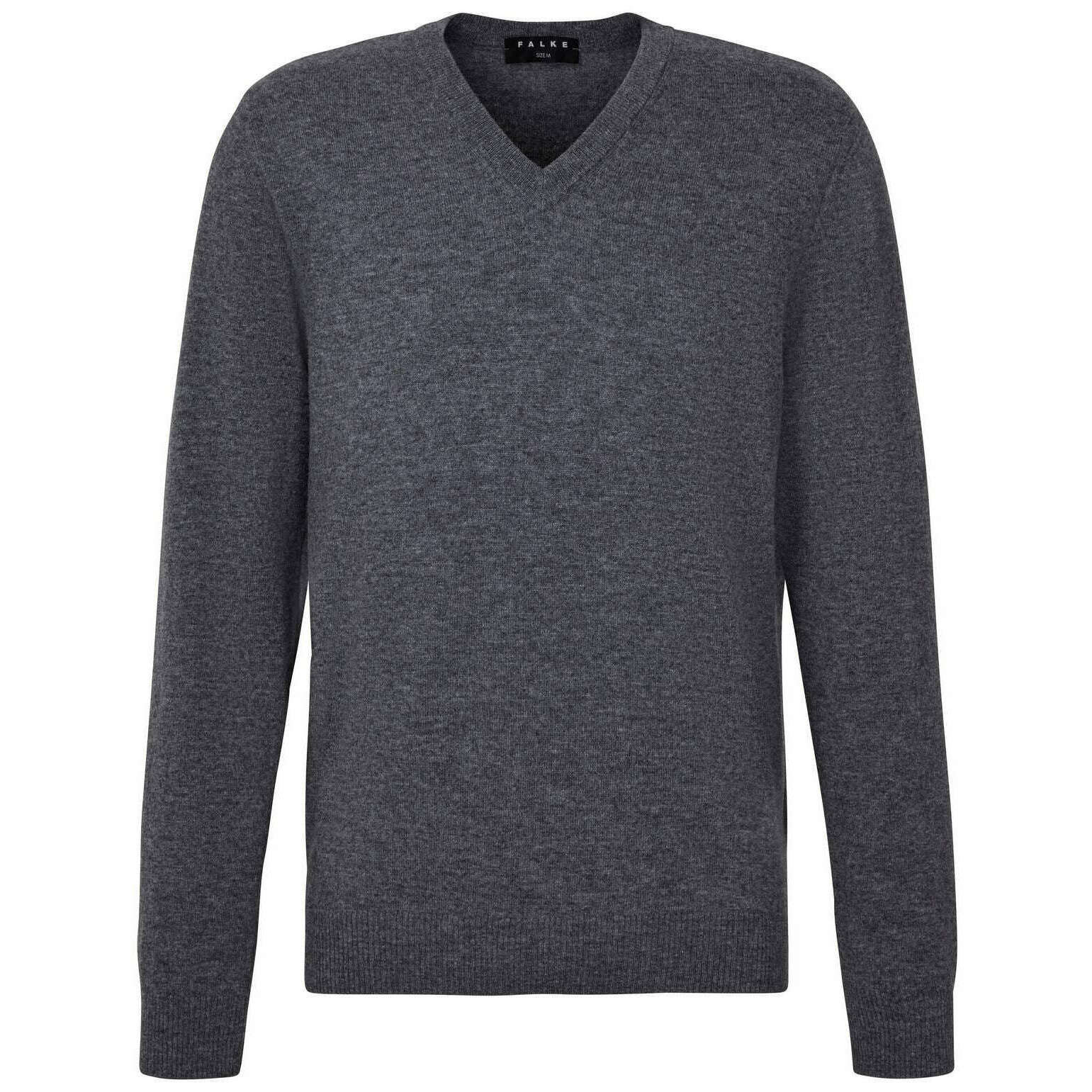 Jersey Falke de lana de cordero con cuello en V - Gris oscuro jaspeado